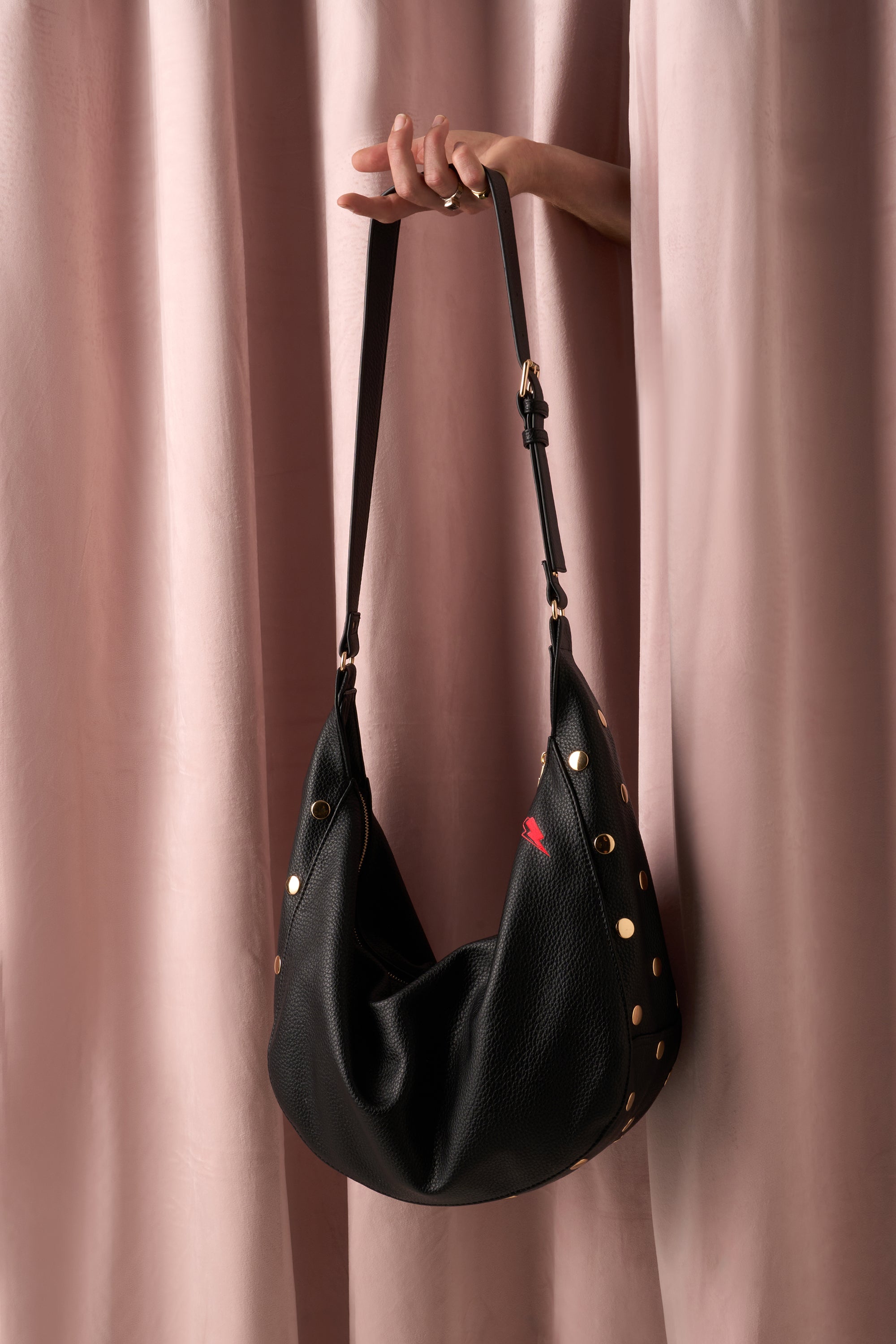 Go hands-free in style, thanks to our black studded slouch bag. A contemporary-cool accessory made to go with anything, it's perfect for work, weekends and everything in-between.