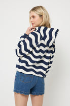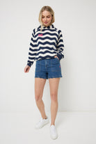 This navy and cream wave stripe hoodie is perfect paired with jeans to the park or out for food with friends. Made from a super-soft organic cotton blend to keep you warm and cosy through this season and beyond.