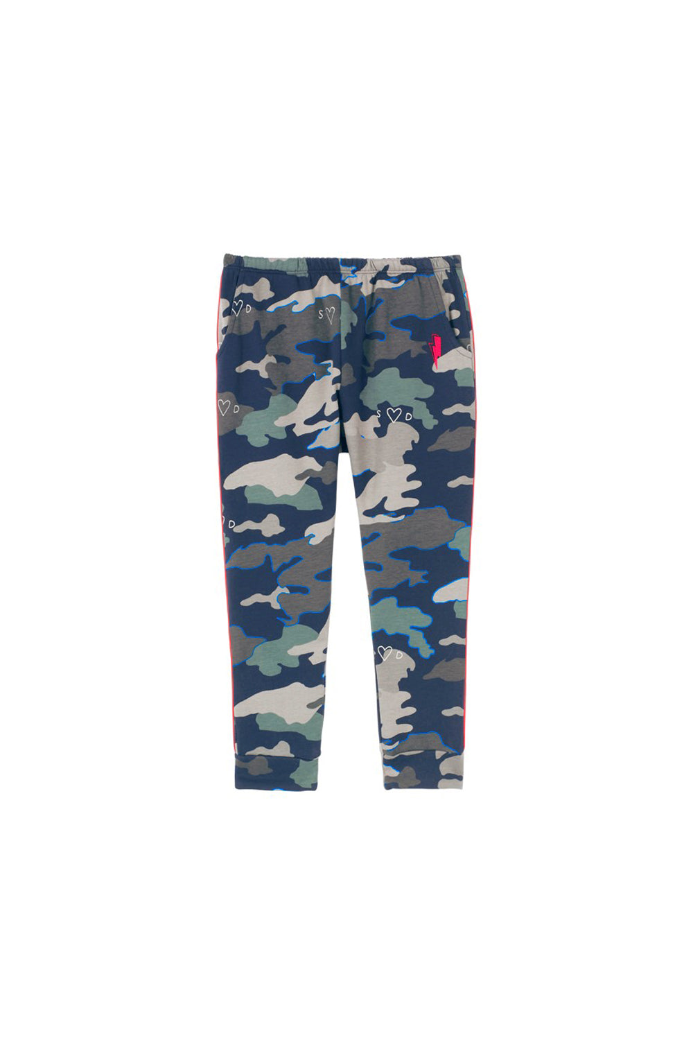 A relaxed fit with a comfortable elasticated waist, tapered leg and complete with pockets for small toys and stone collections. Neon pink embroidered lightning bolt ‘Superpower Button’ on the hip