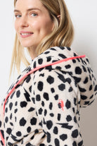 Wrap up warm in our super-soft and cosy cream with black cheetah print dressing gown. Featuring a cosy hood, long sleeves and spacious front pockets, it fastens with a self fabric tie belt. Perfect for wrapping up warm on chilly mornings and evenings.