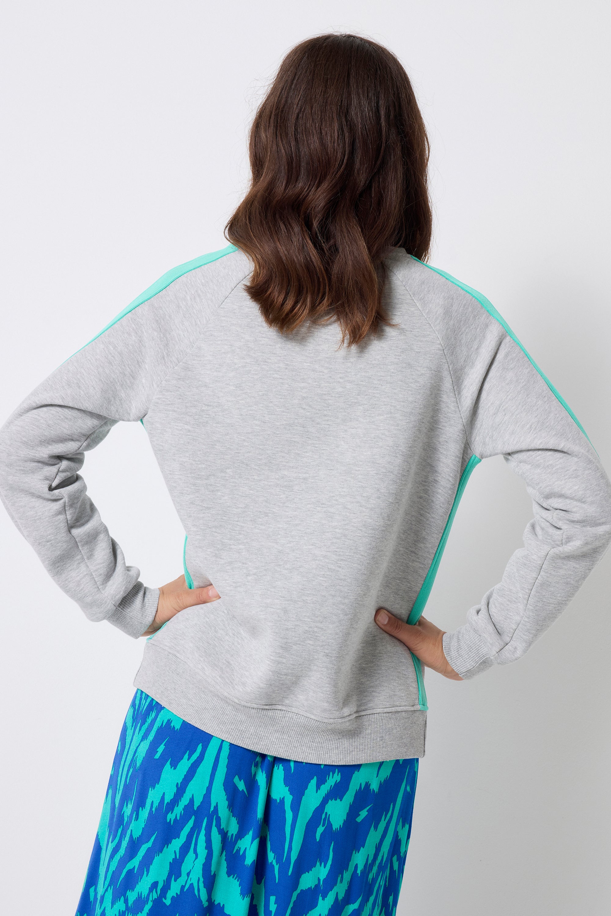 Grey Marl with Turquoise Colourblock Relaxed Sweatshirt