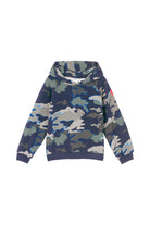 Organic cotton kids hoodie in navy camo print with electric blue outline. A relaxed, comfy fit and super soft fabric. Matching joggers are also available for a complete tracksuit.