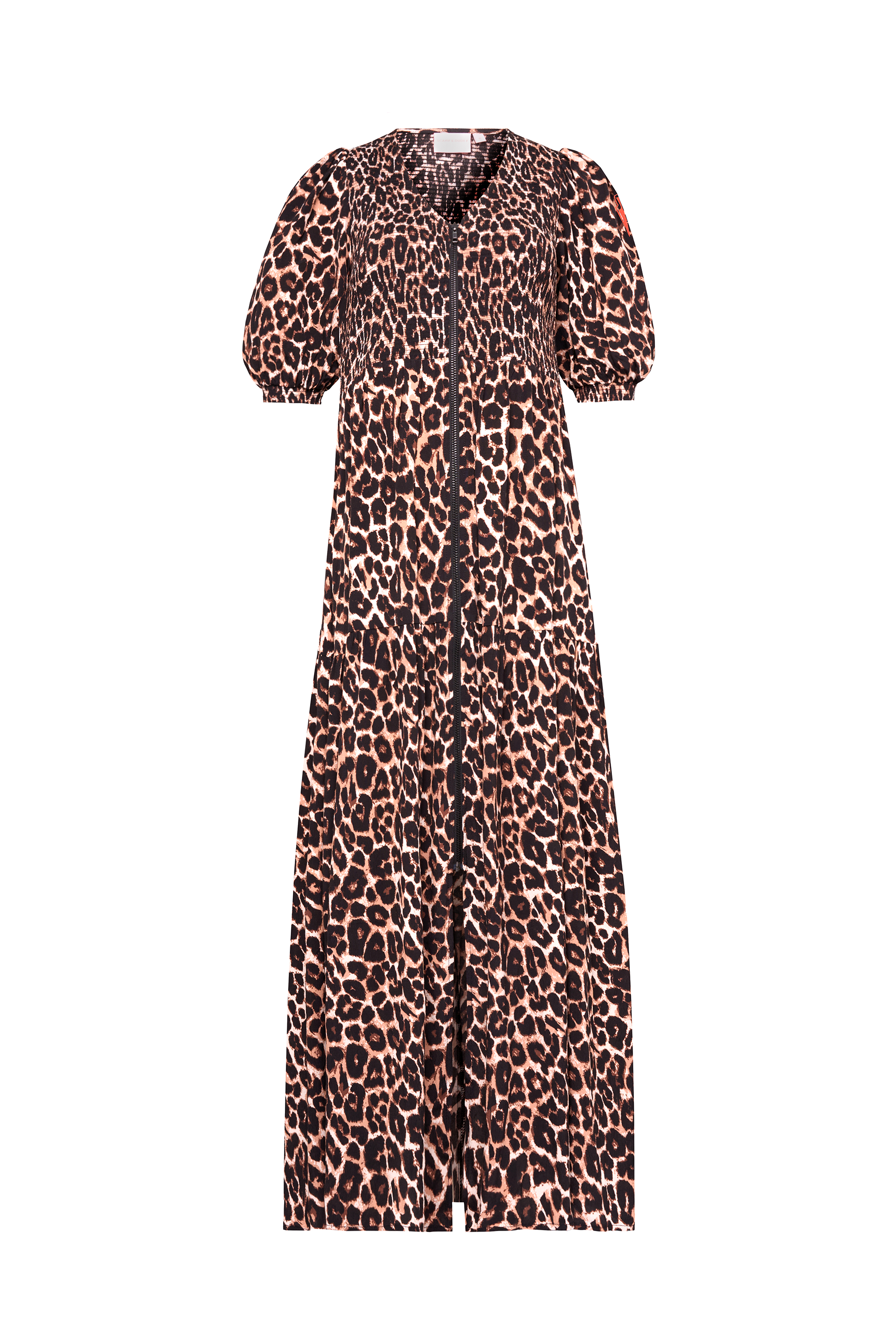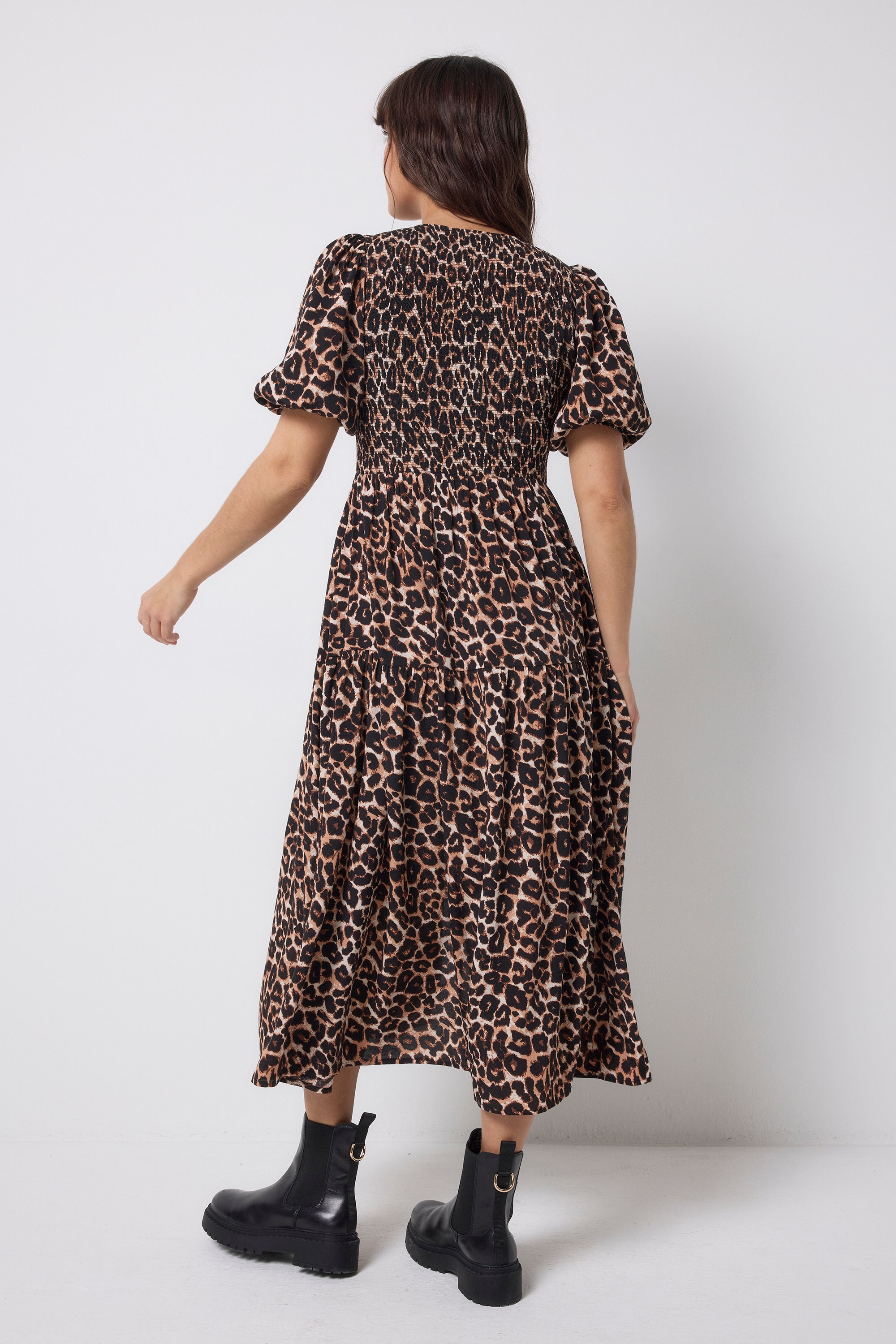 This neutral jaguar and lightning bolt print midi dress is destined to be a favourite in your wardrobe. It's finished with pretty short blouson sleeves and a tiered skirt for an added touch of style.