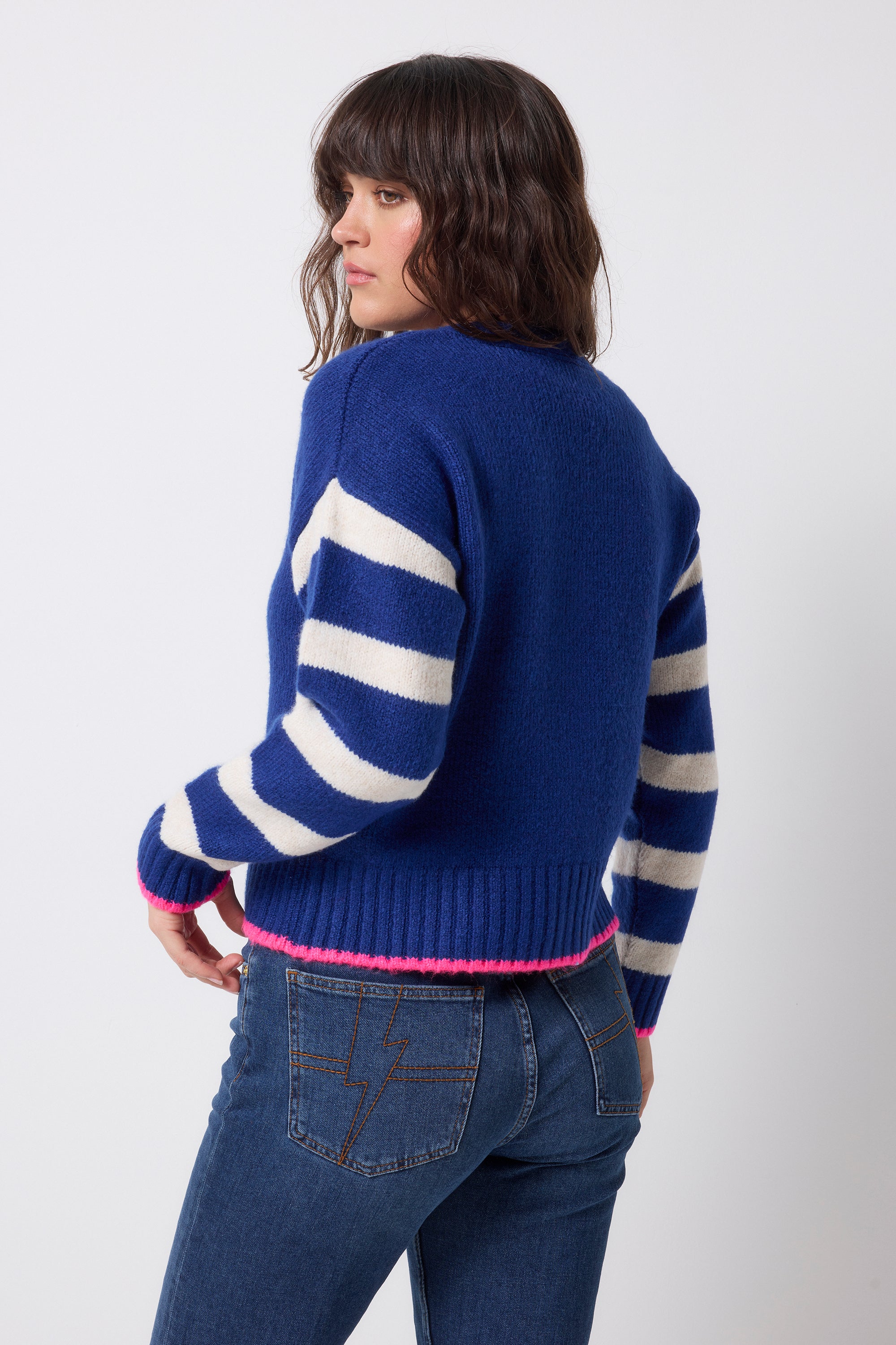 COMING SOON: Bright Blue with Cream Stripe Cardigan