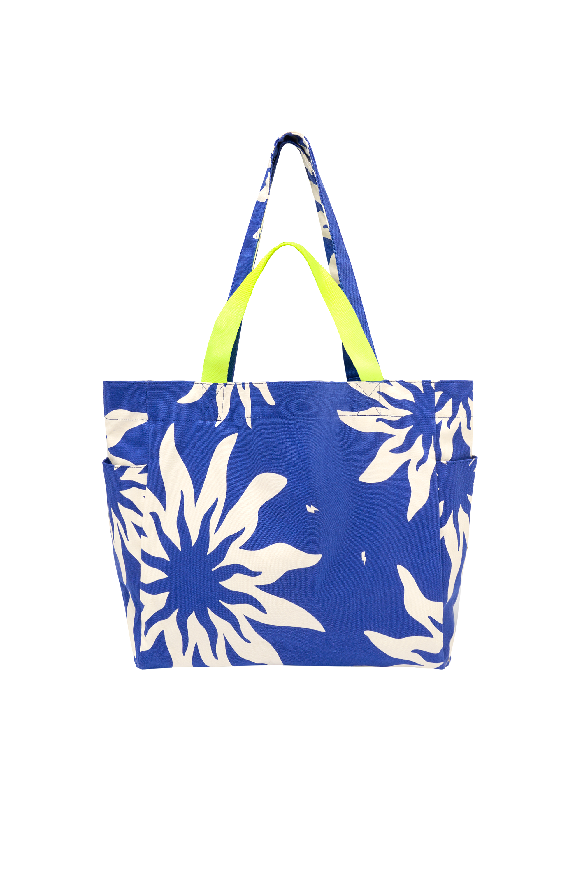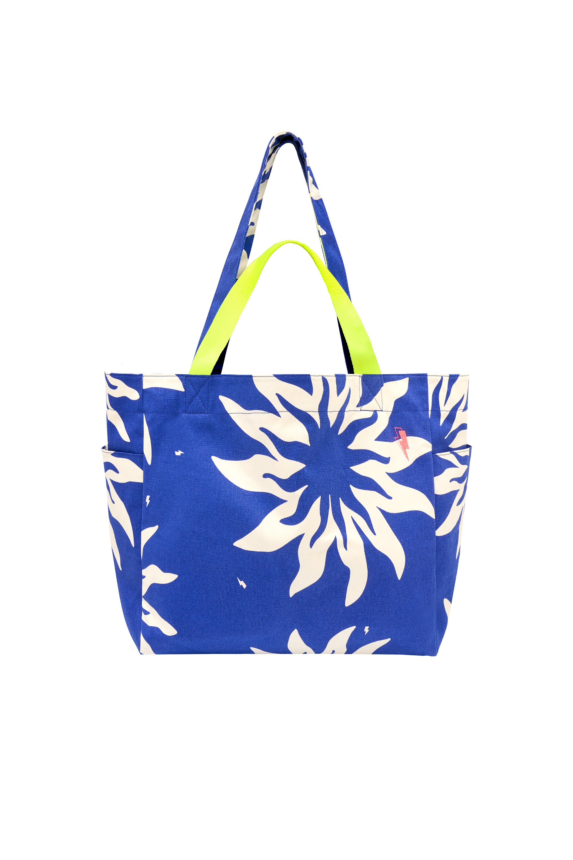 Blue Lightning Bolt Oversized Quilted Bomber Jacket