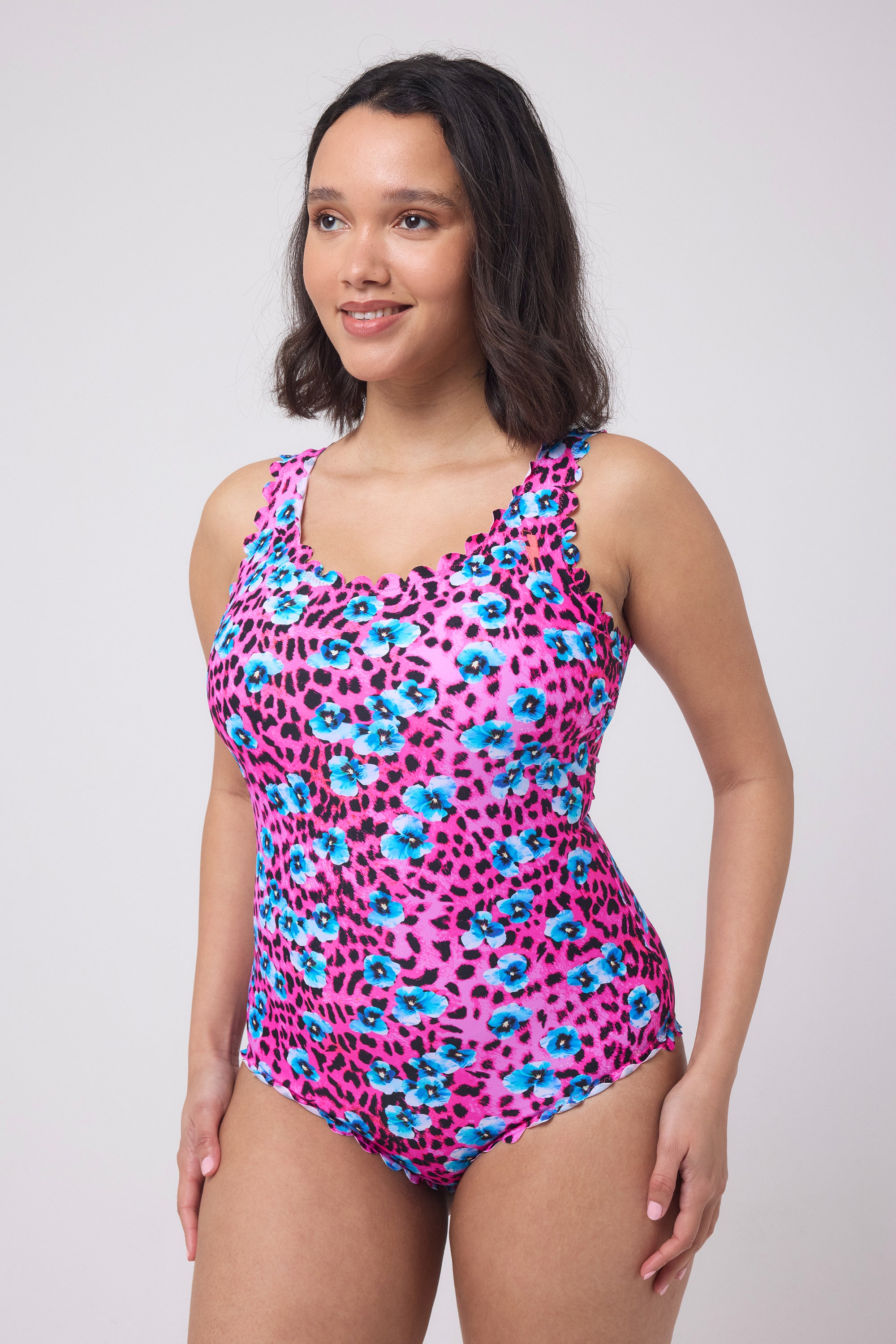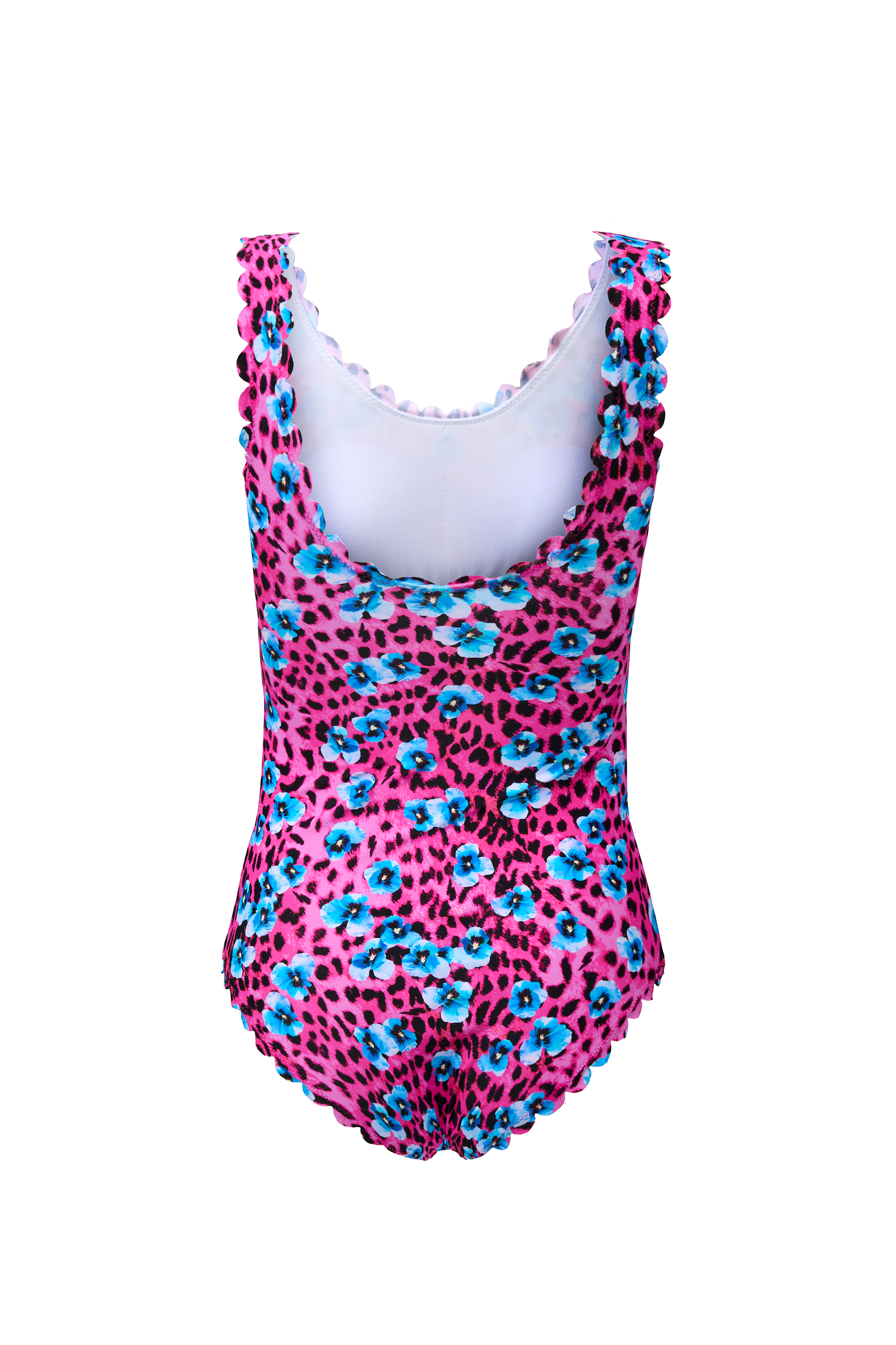 Bright Pink Paradise Cheetah Scallop Edge Swimsuit