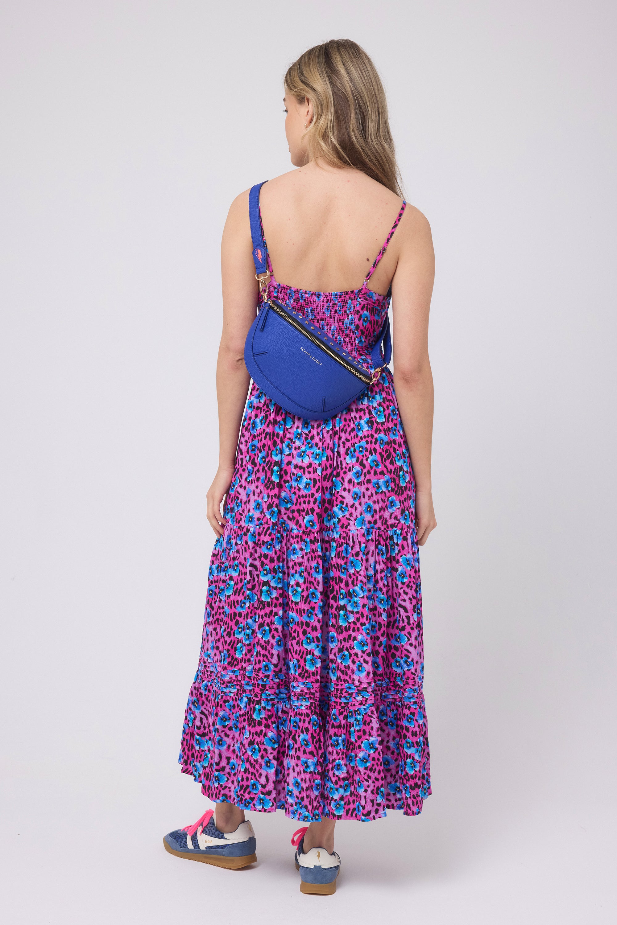 Bright Pink Paradise Cheetah Pintuck Midi Sundress