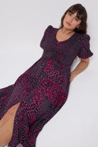 COMING SOON: Grey with Pink Leopard Ray Shirred Zip Detail Midi Dress