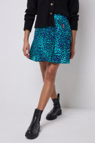 Print: COMING SOON: Turquoise with Blue Cheetah Skater Skirt