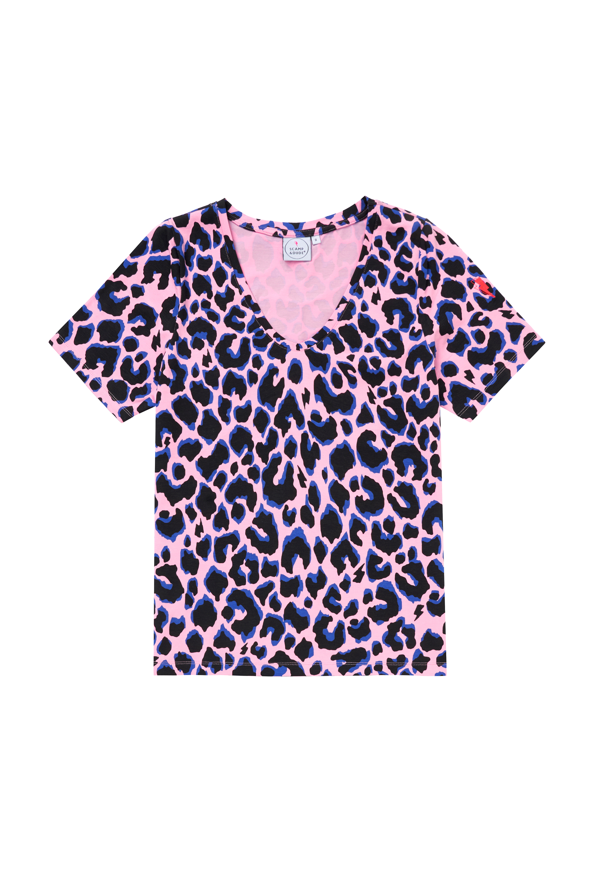 Pink with Blue and Black Shadow Leopard V-Neck T-Shirt