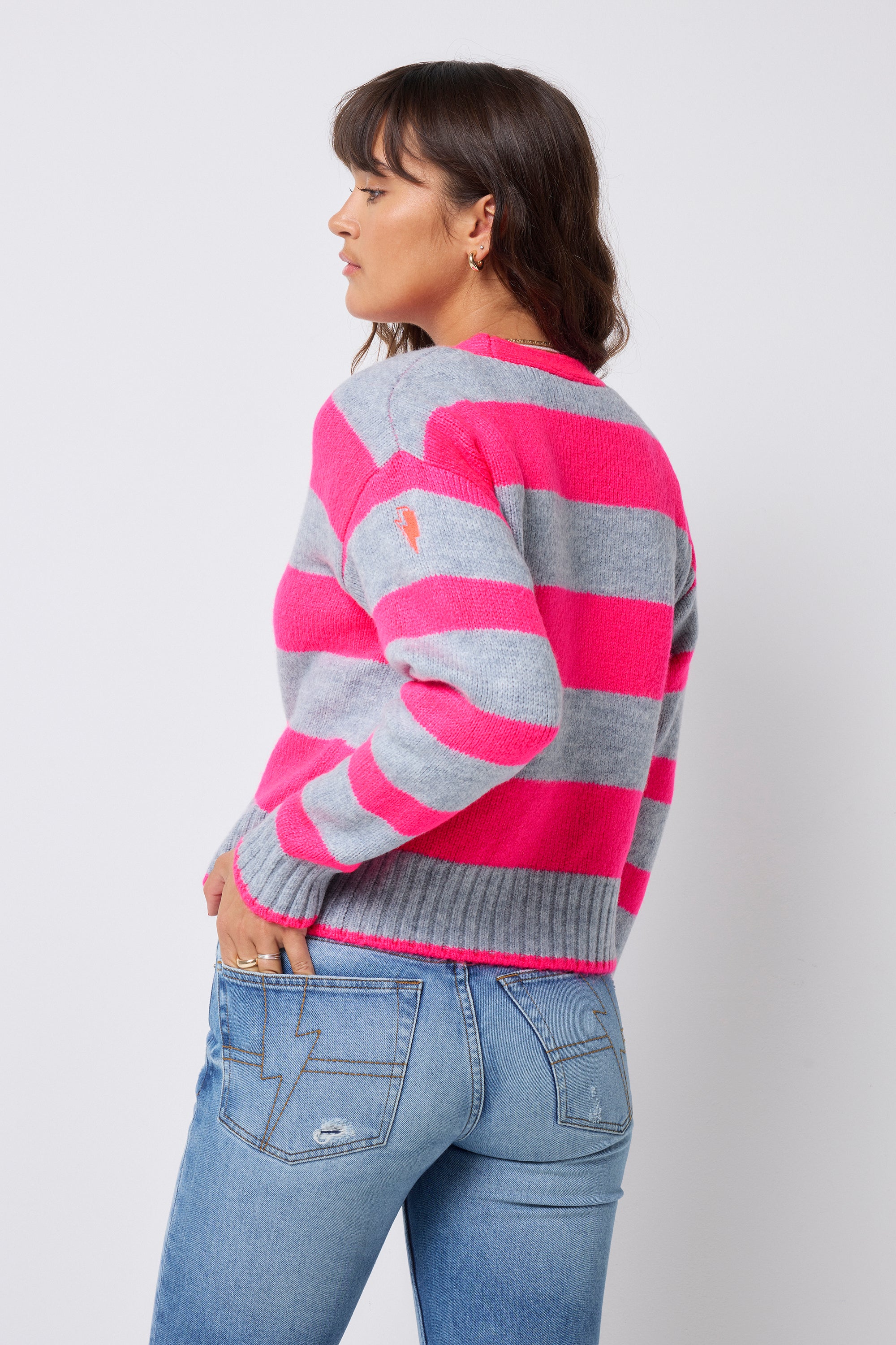 - Signature neon pink embroidered lightning bolt on the sleeve