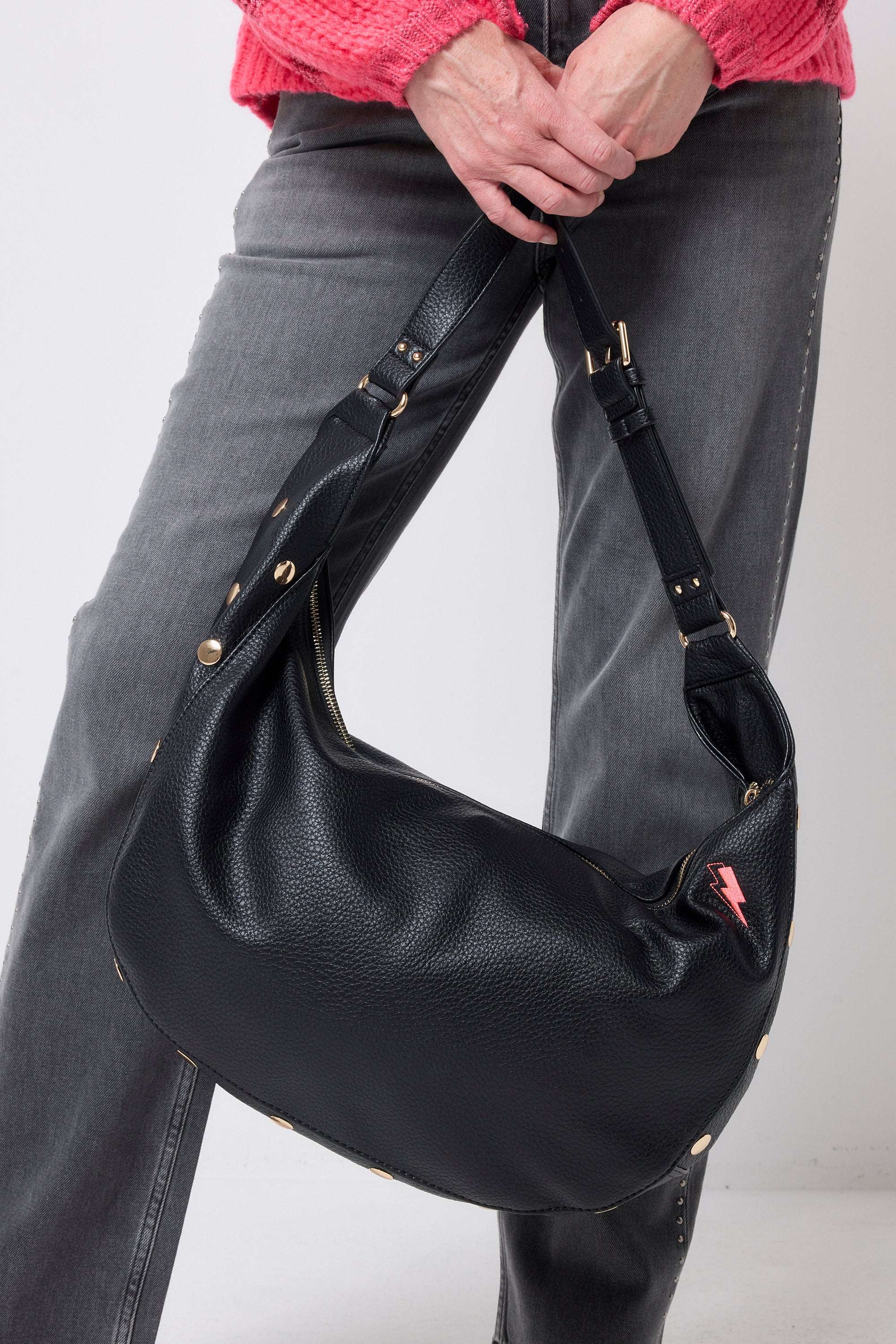 Go hands-free in style, thanks to our black studded slouch bag. A contemporary-cool accessory made to go with anything, it's perfect for work, weekends and everything in-between.