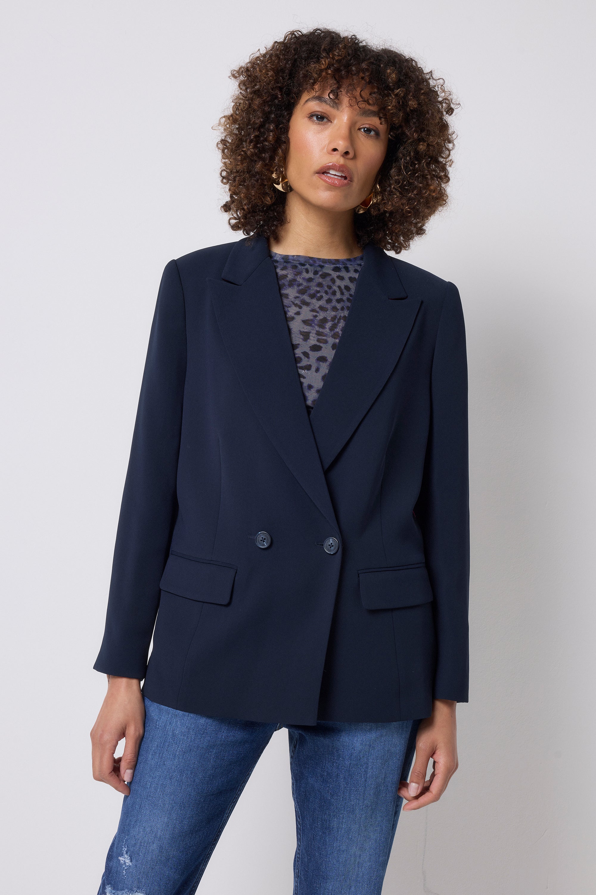 This tailored blazer is true to size and straight cut.