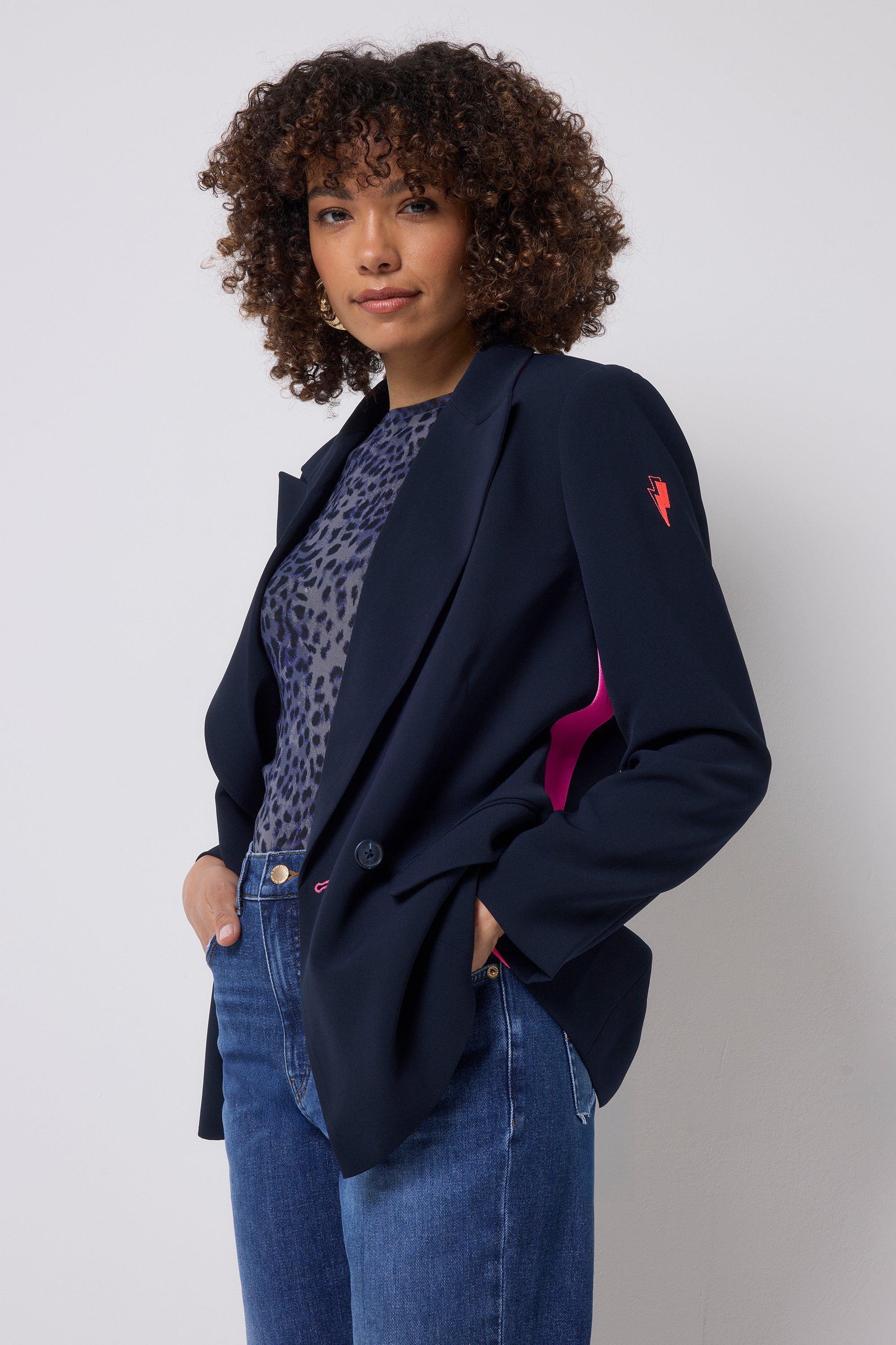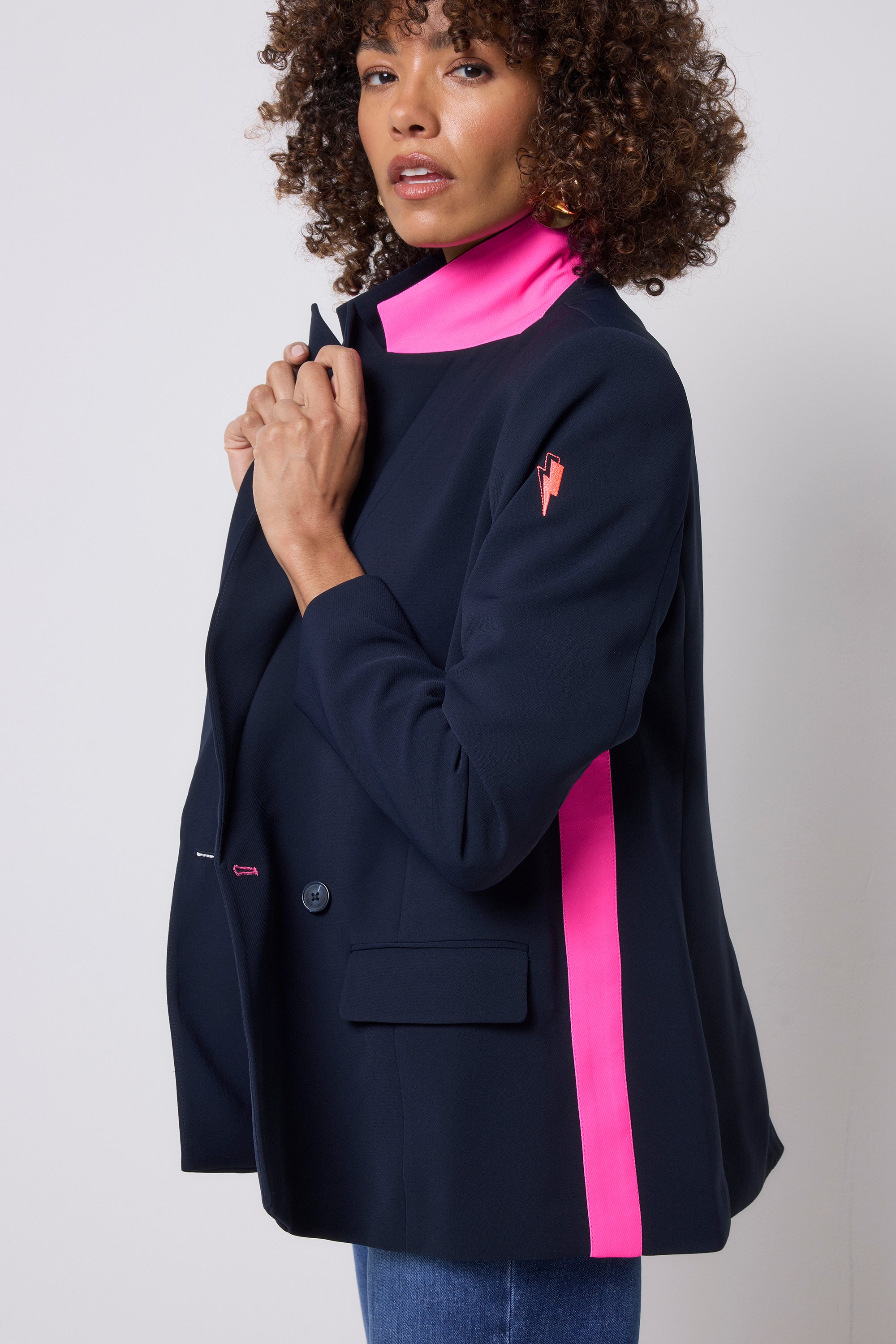 Navy with Pink Side Stripe Blazer