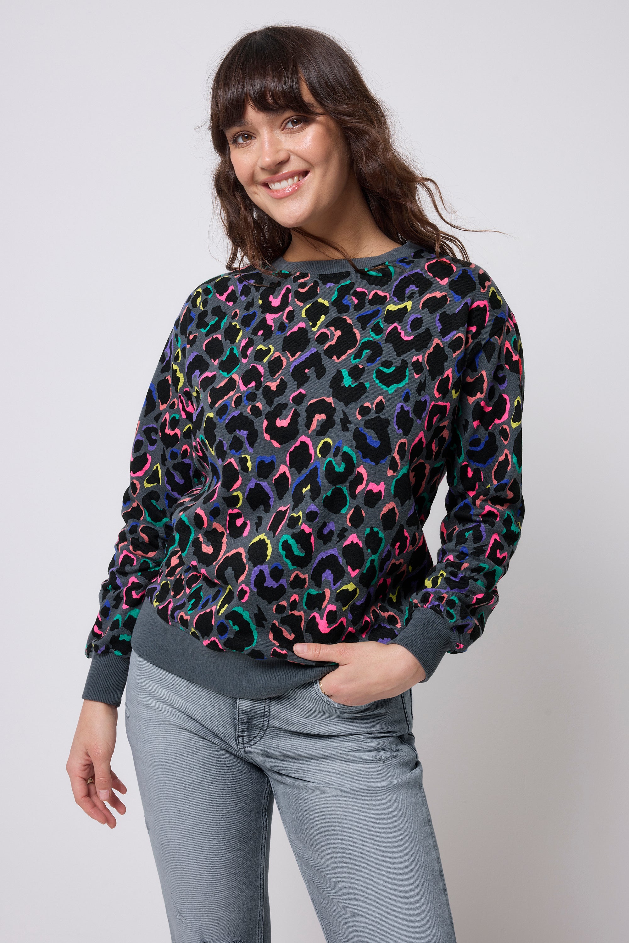 Grey with Rainbow Shadow Leopard Oversized Sweatshirt