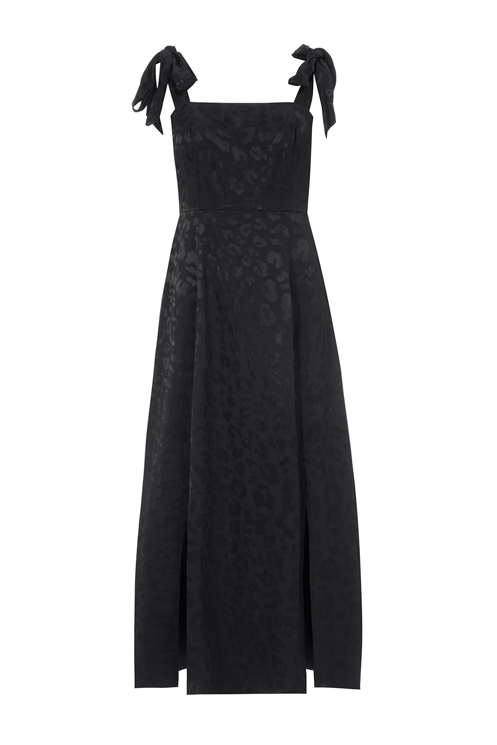 Adorned with leopard print for a mesmerising finish and elegantly cut to give a feminine silhouette, our black jacquard tie shoulder dress is made from viscose that's beloved for its weightless feel.