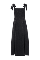 Black Jacquard Leopard Tie Shoulder Dress