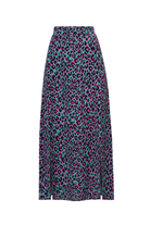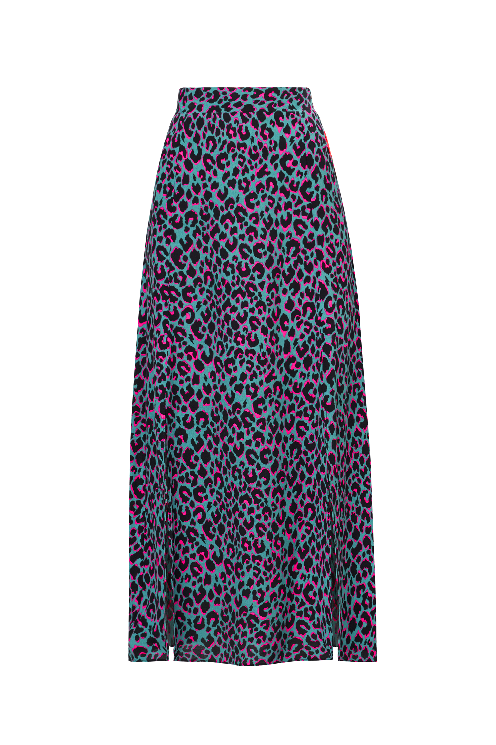 Khaki with Pink and Black Small Shadow Leopard Split Front Skirt