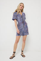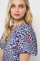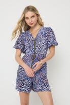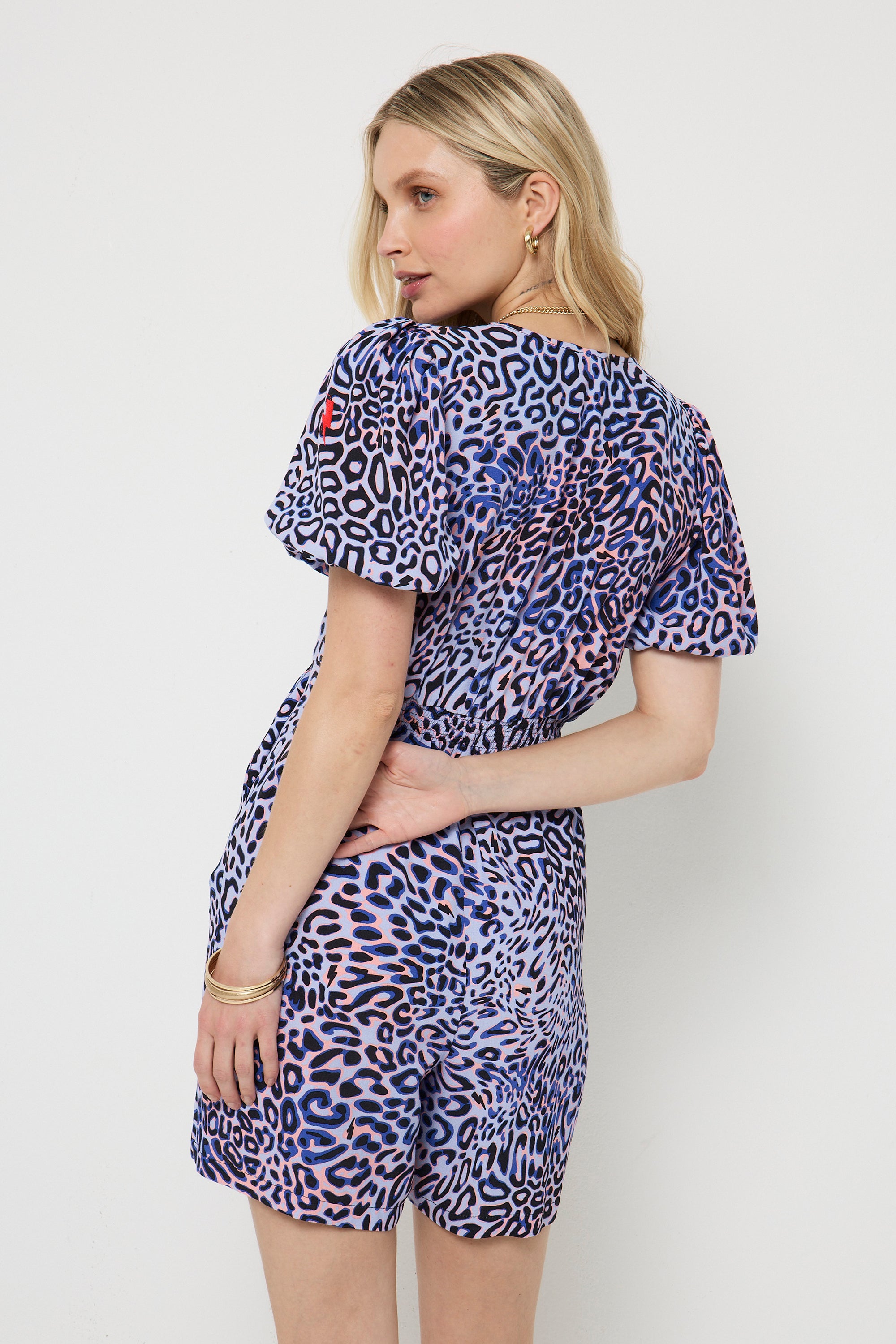 Lilac with Black and Pink Leopard Ray Zip Front Playsuit