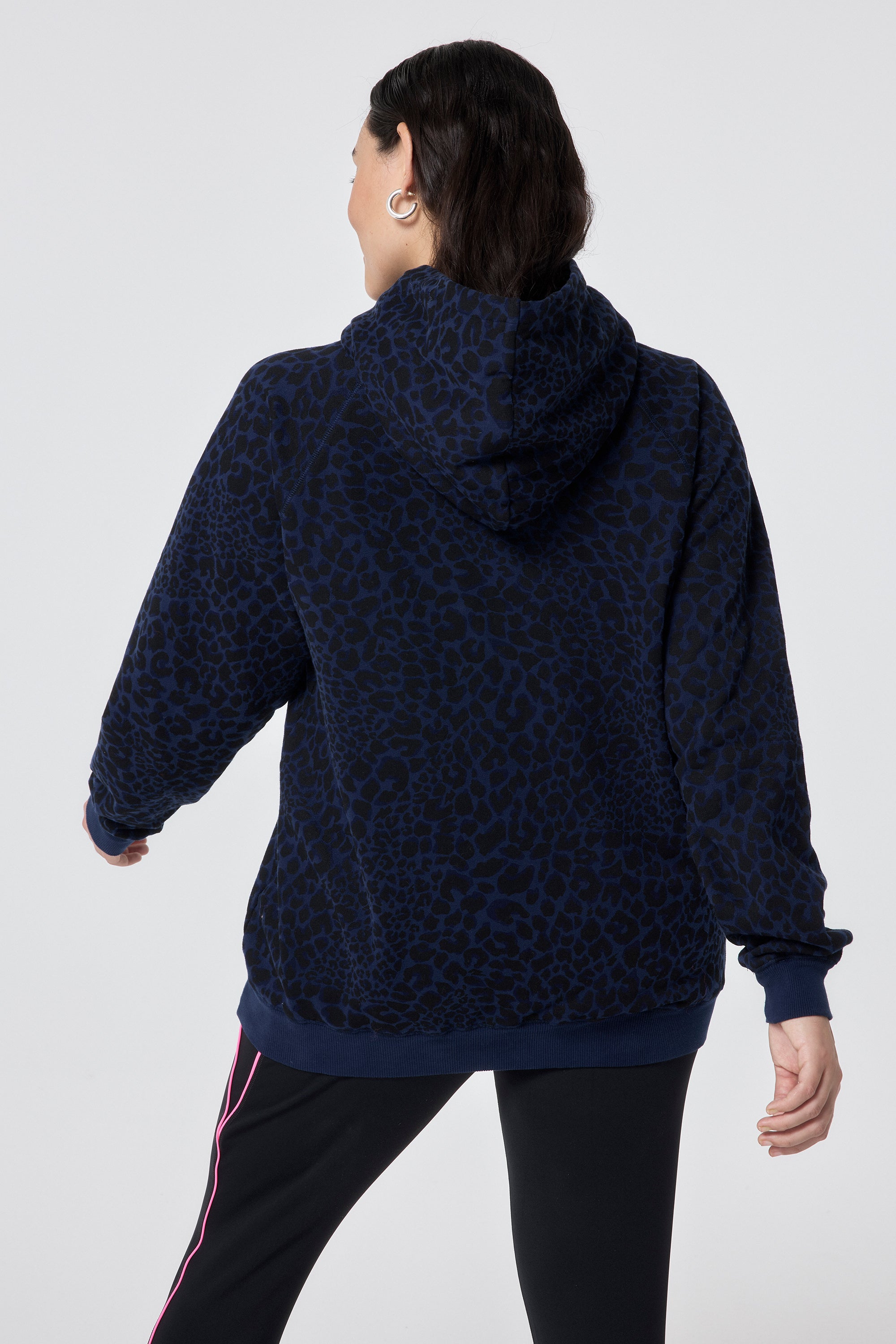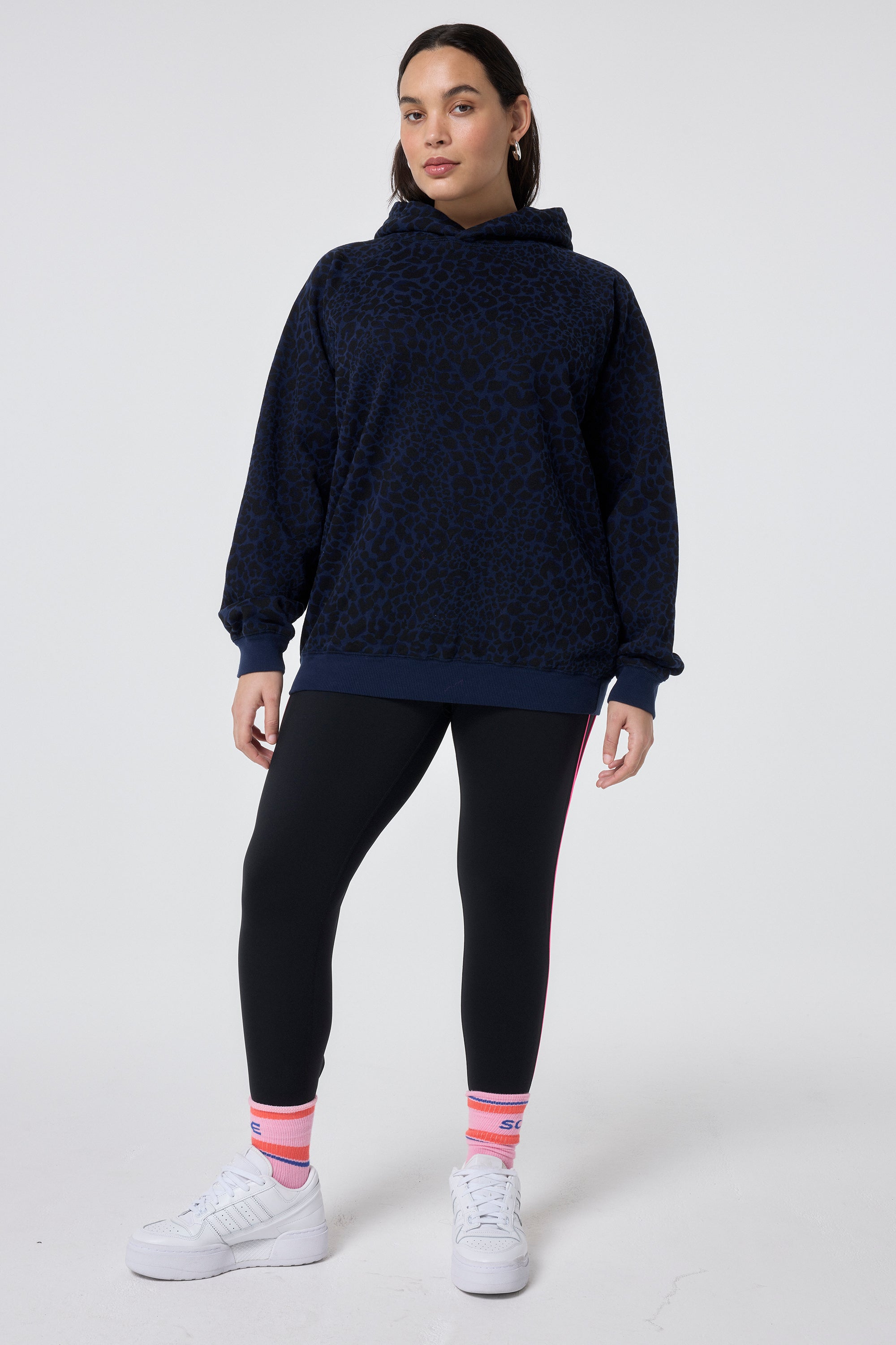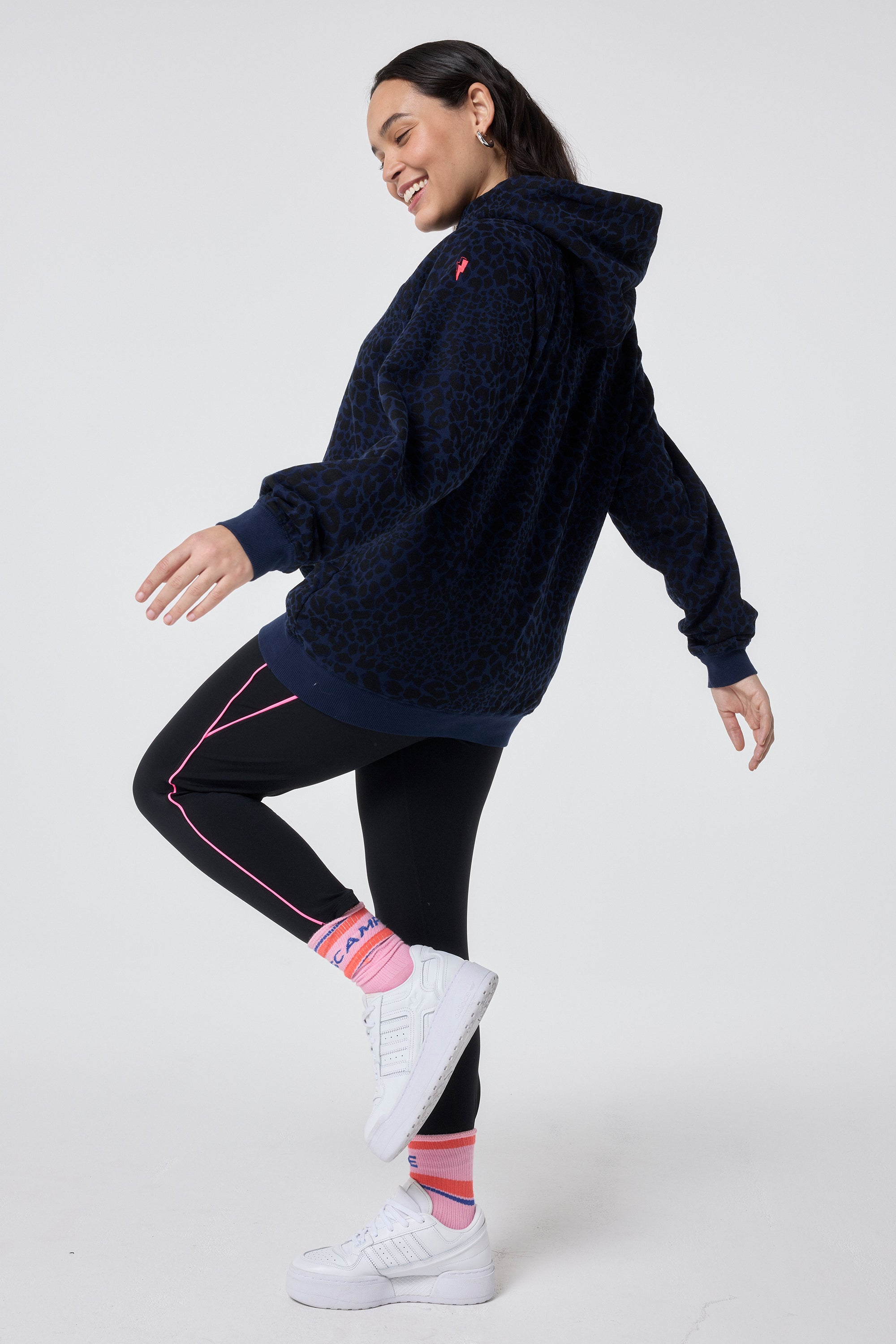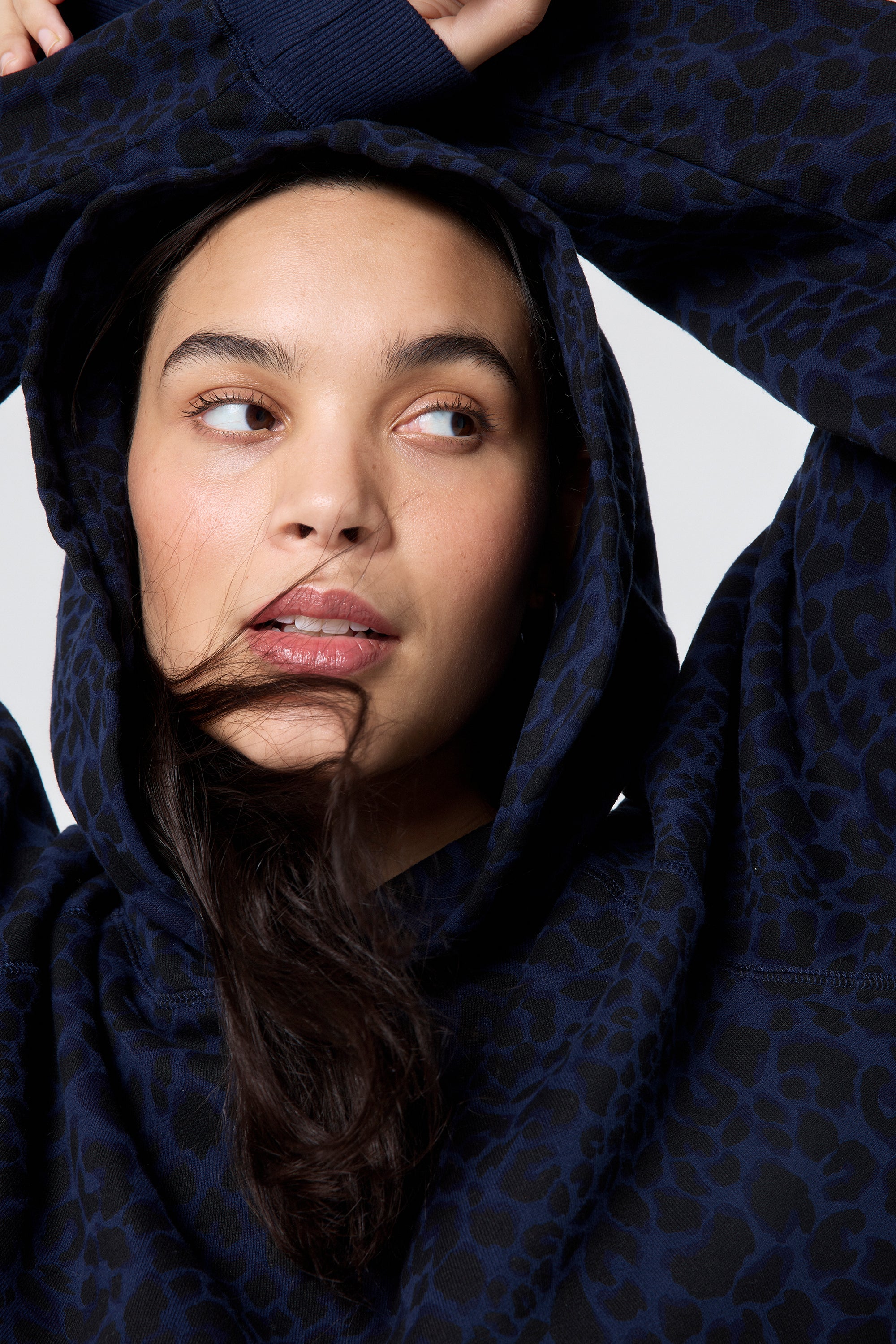 Say hello to our new navy with black rock and roll leopard hoodie. Keeping things casual with a relaxed fit and snuggly sizeable hood, it's made from 100% organic cotton which provides a super-soft feel and is an easy daytime option.