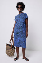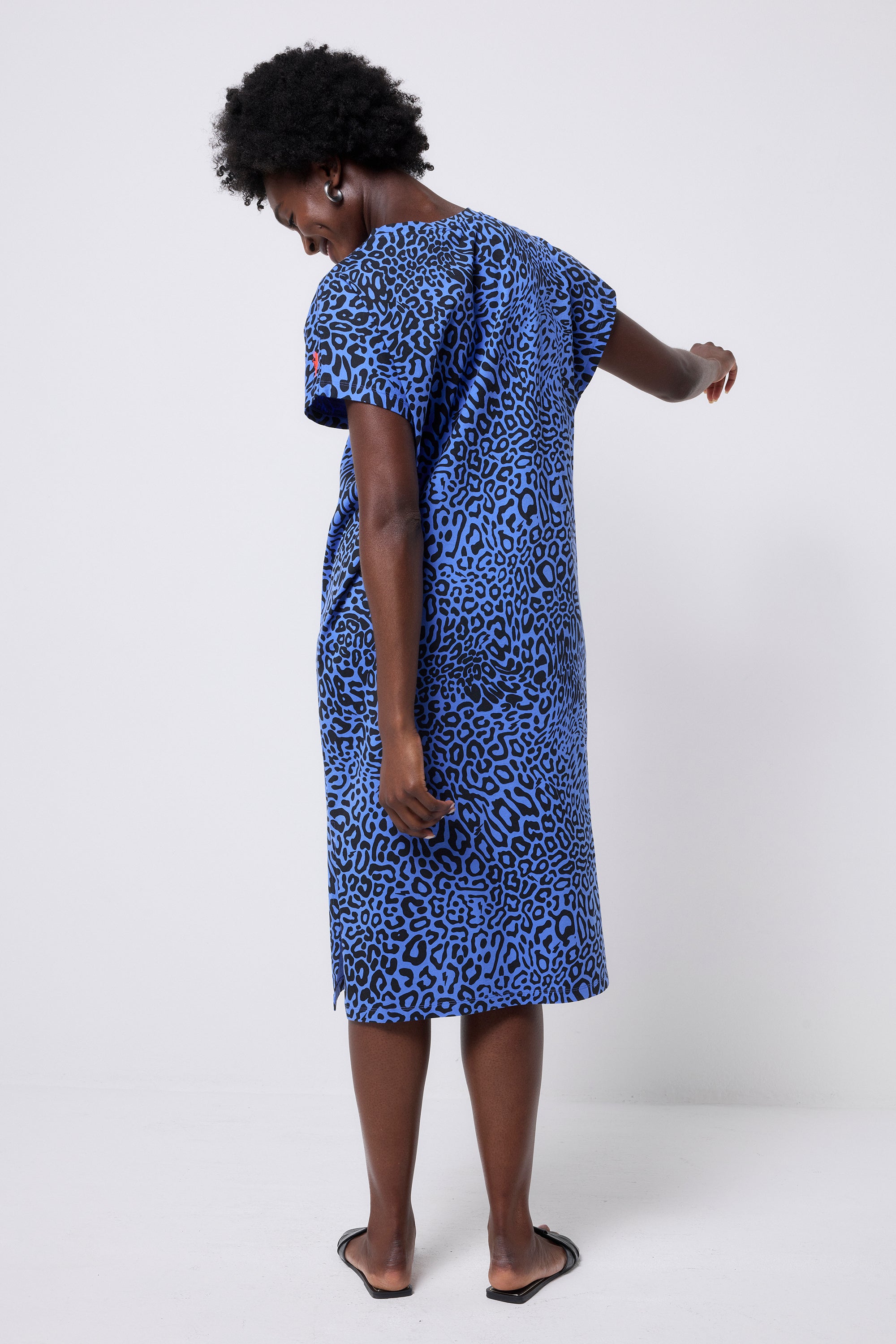 Blue with Black Leopard Ray Midi T-Shirt Dress