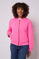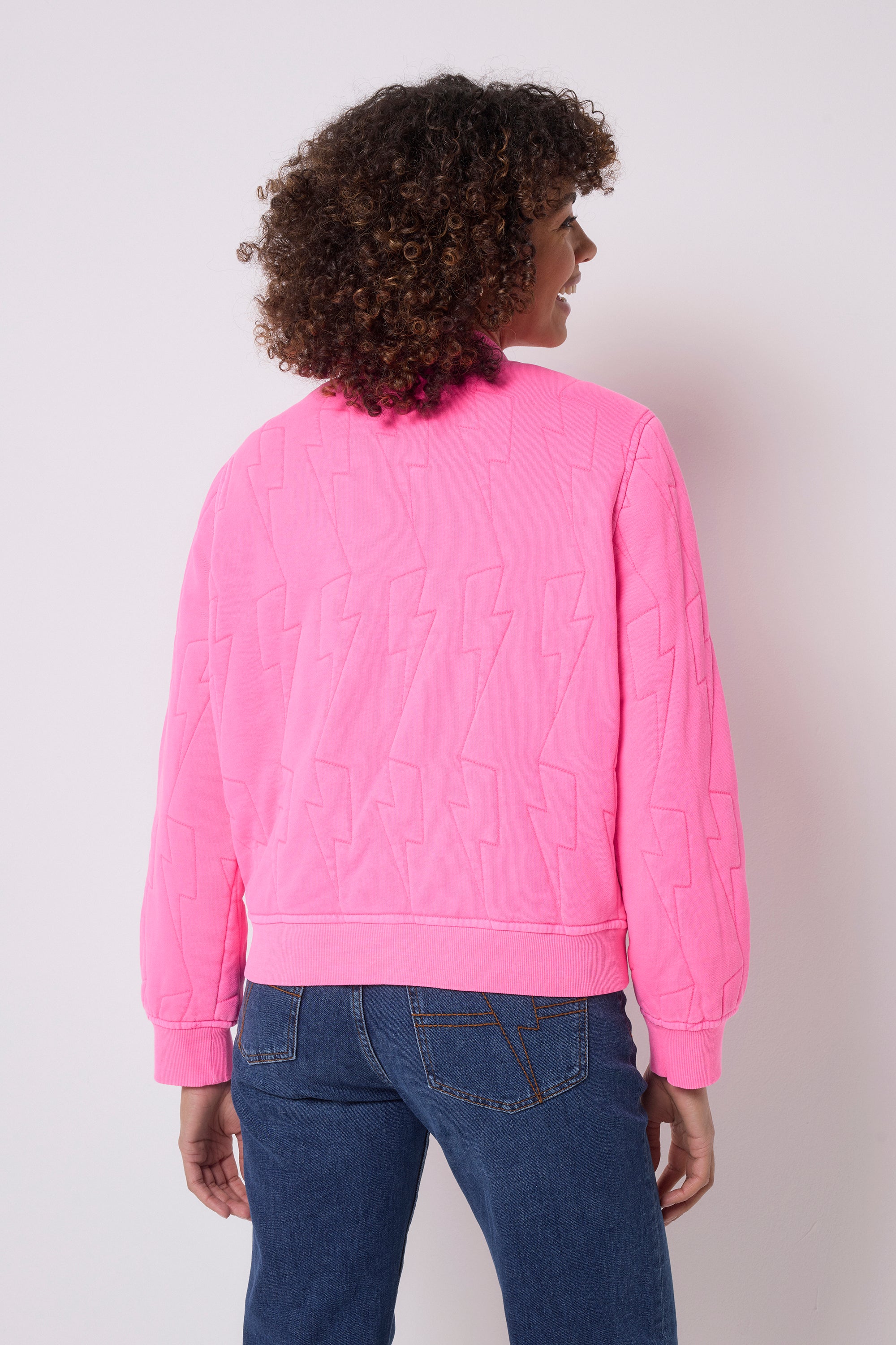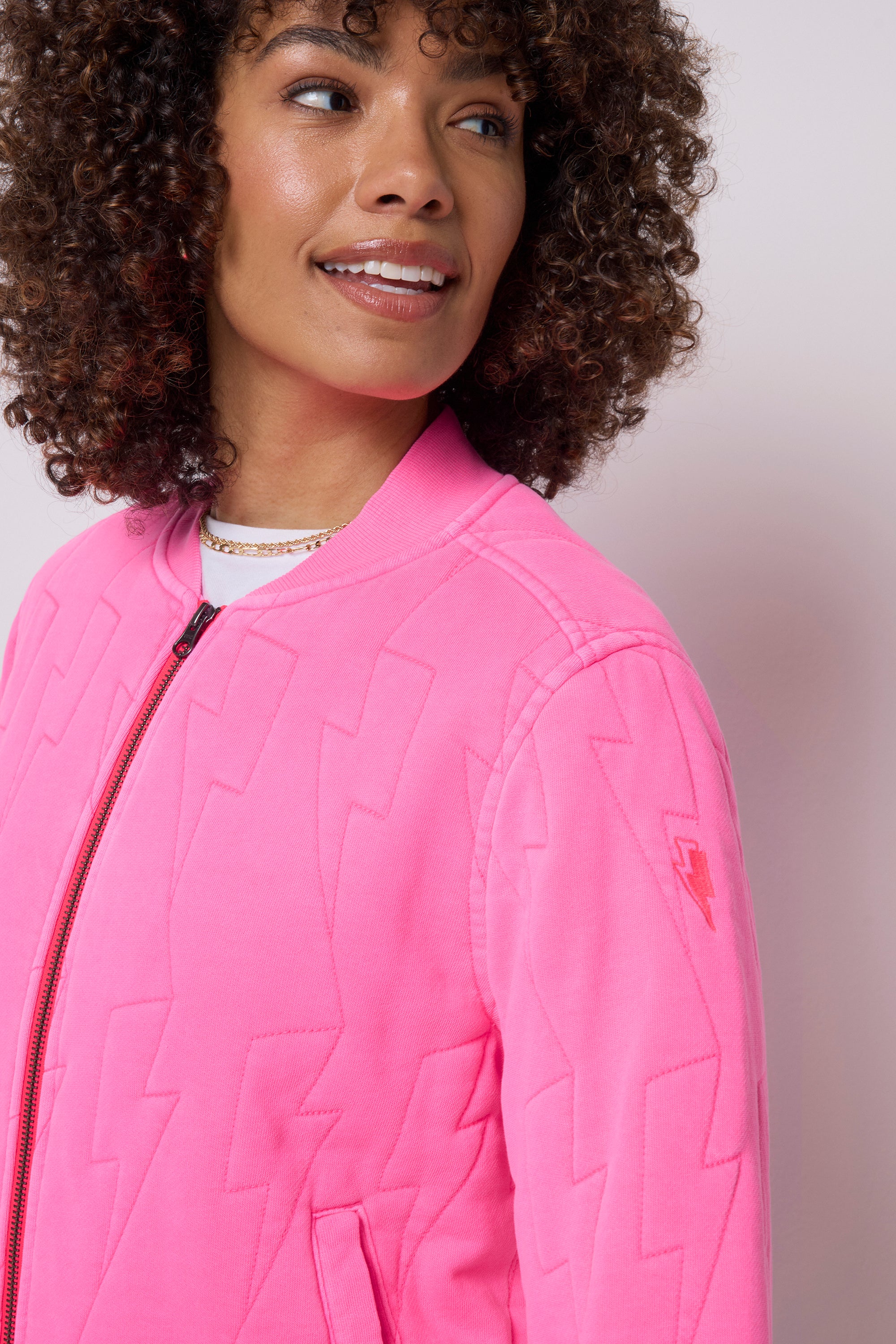 Print: Neon Pink Lightning Bolt Fitted Quilted Bomber Jacket