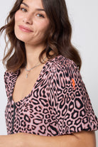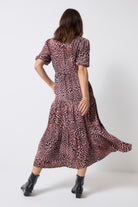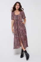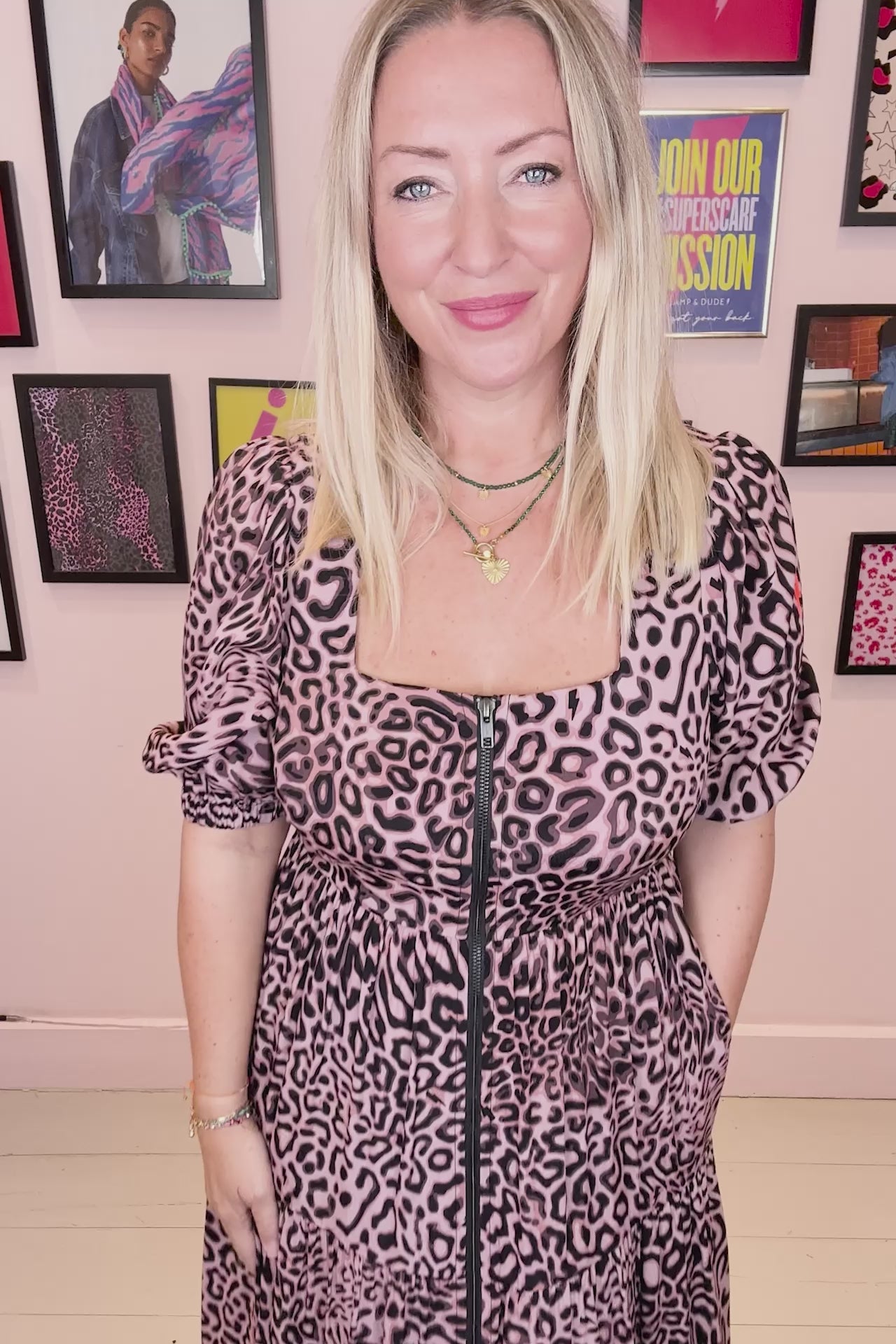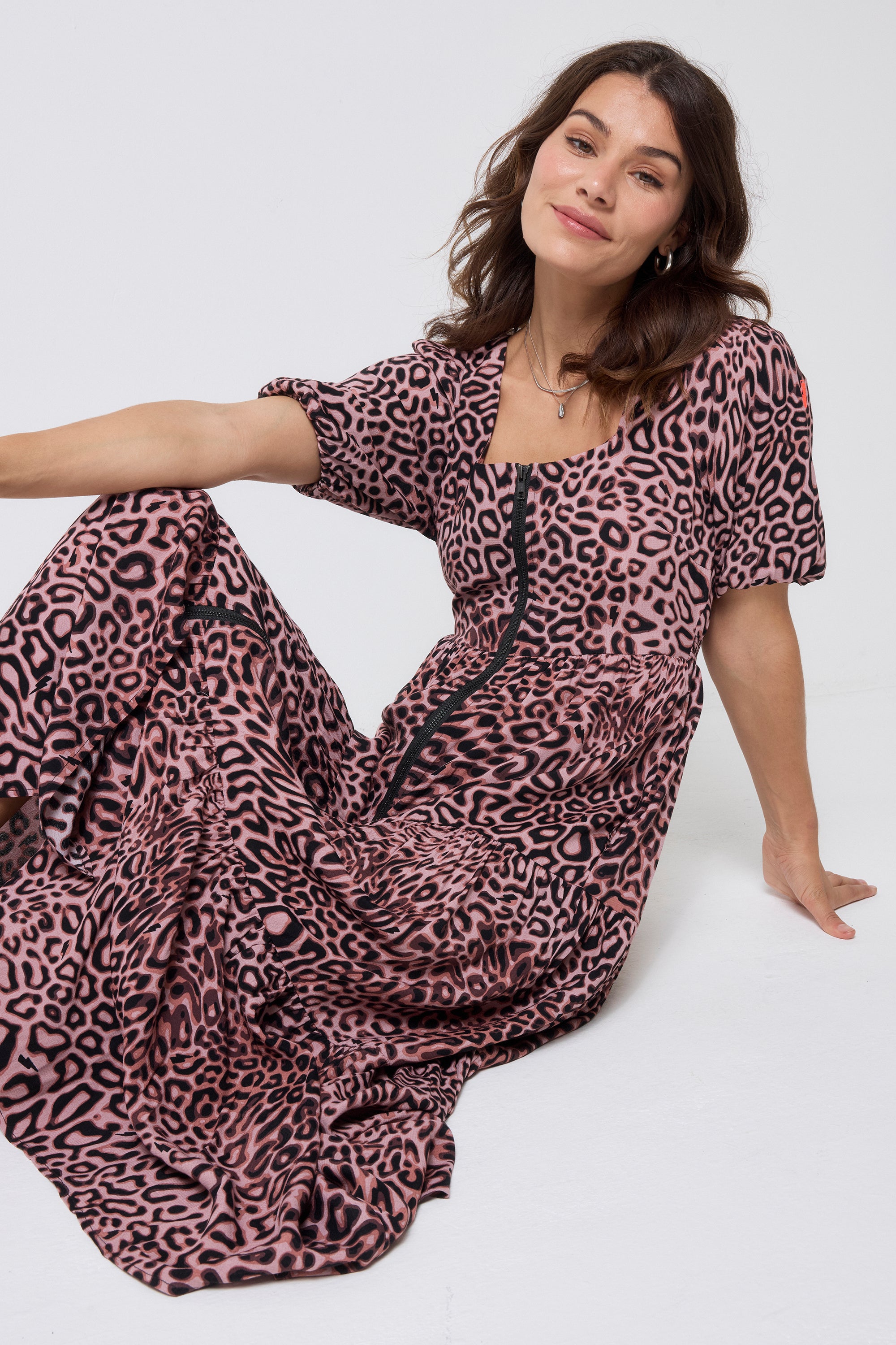 Neutral Leopard Ray Square Neck Zip Detail Tiered Midi Dress