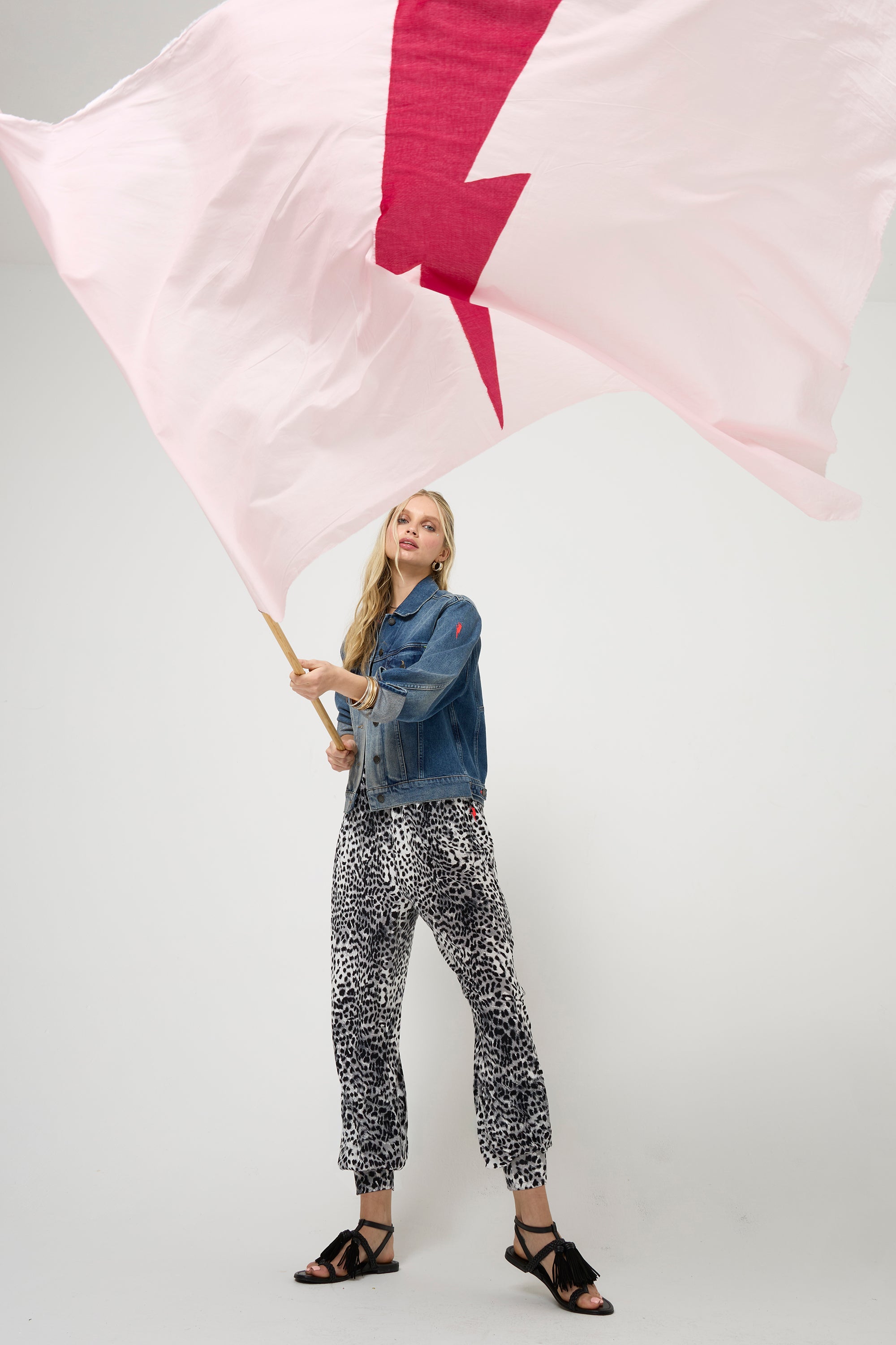 Our grey with black cheetah and lightning bolt jersey jumpsuit is super comfy, fuss-free and perfect for sun-soaked days. Style with a t-shirt underneath or pair with one of our jackets on cooler days.
