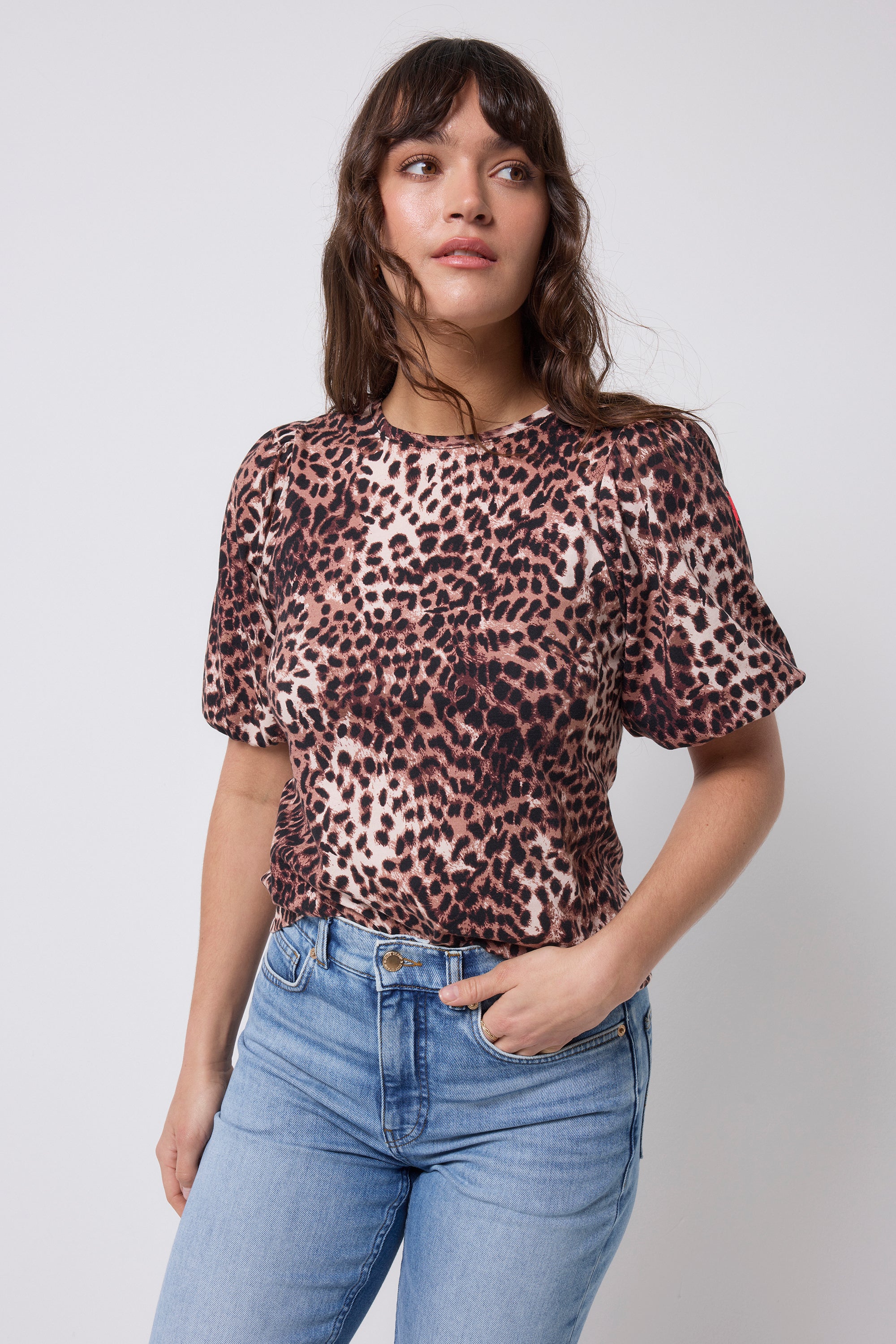 Neutral with Black Cheetah Puff Sleeve T-Shirt