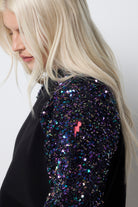 Black with Purple Iridescent Sequin Sleeve Raglan Sweatshirt