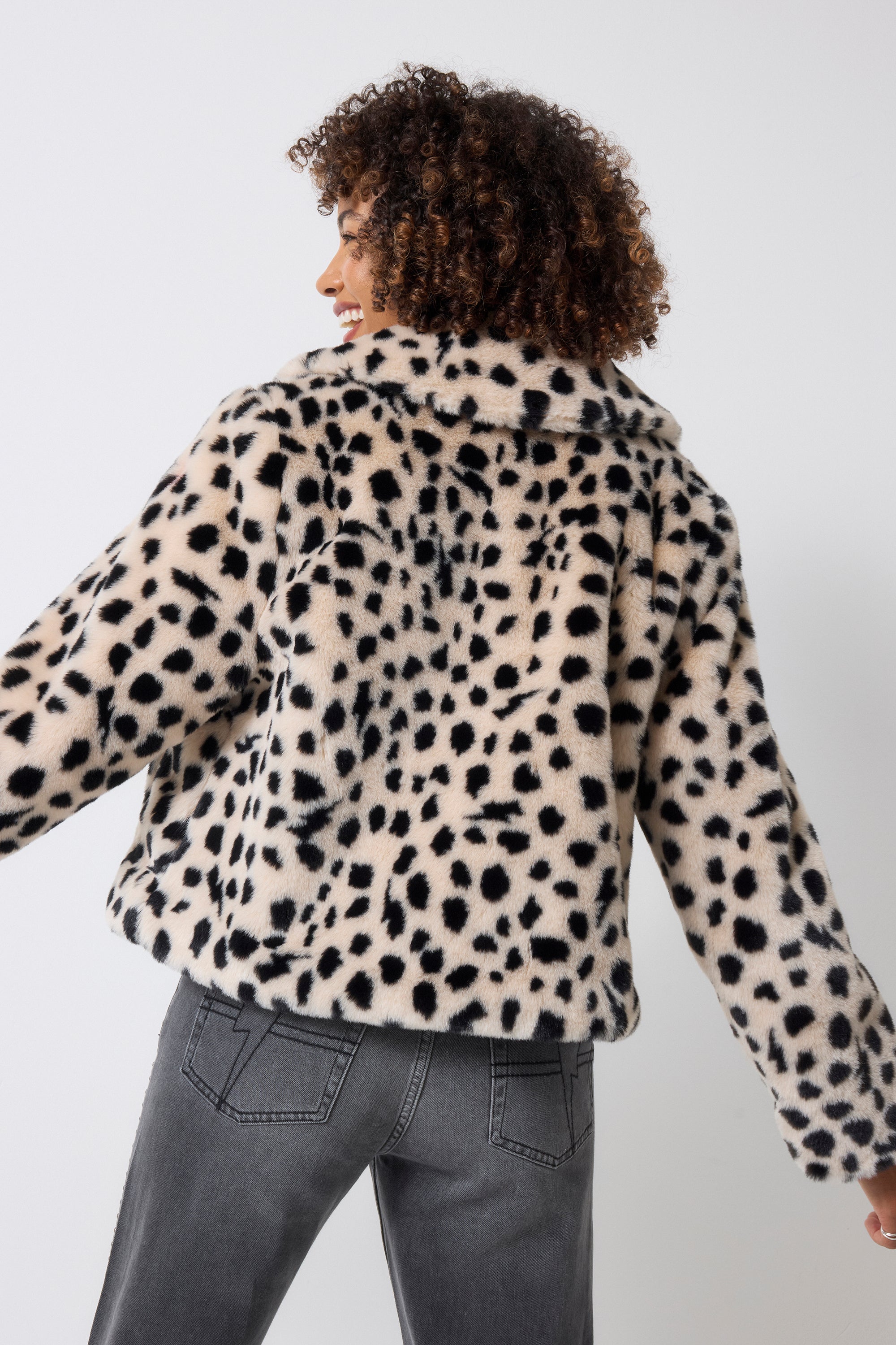Cream with Black Cheetah Faux Fur Jacket