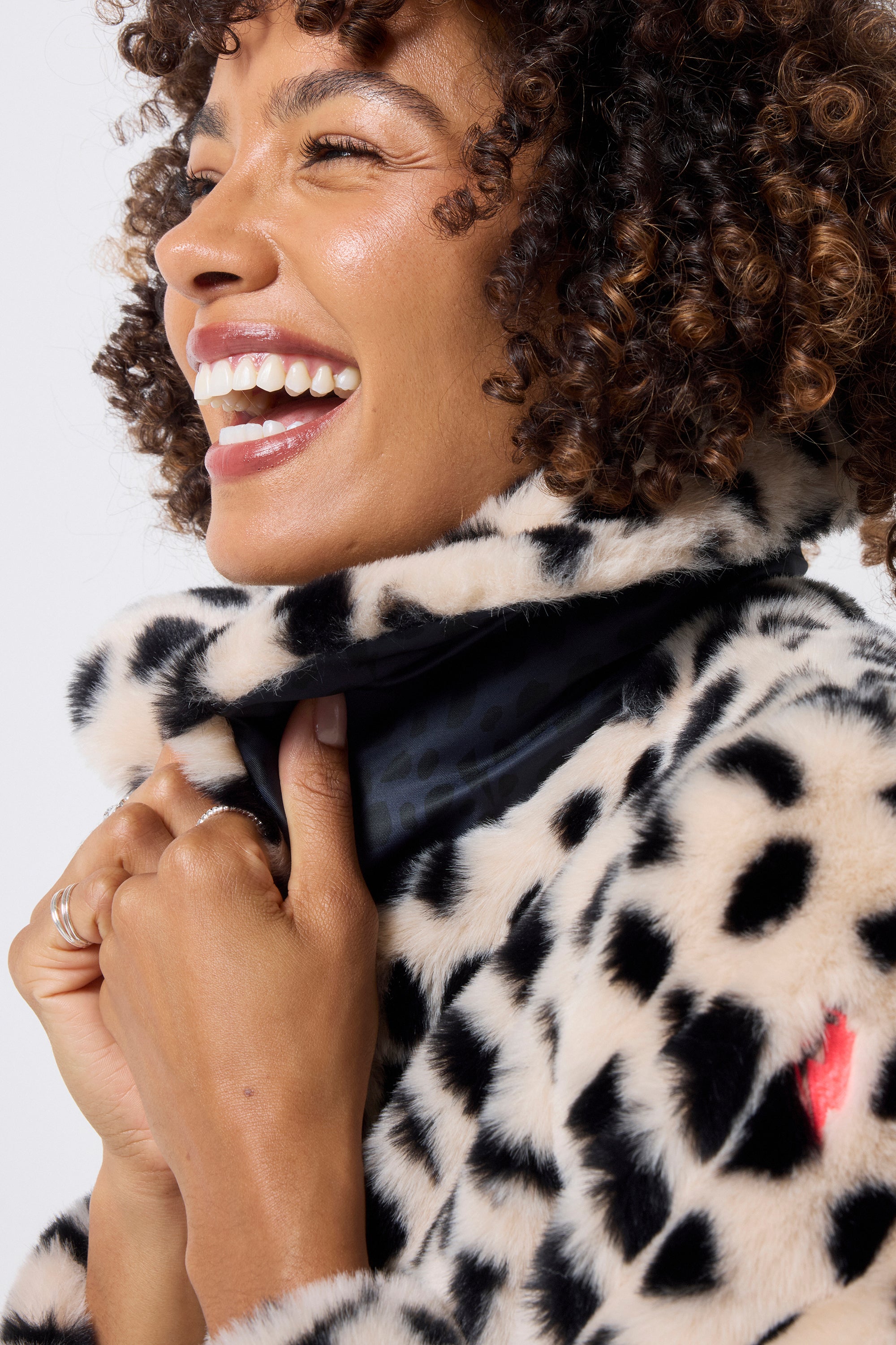 - Super-soft faux fur in cream with black cheetah