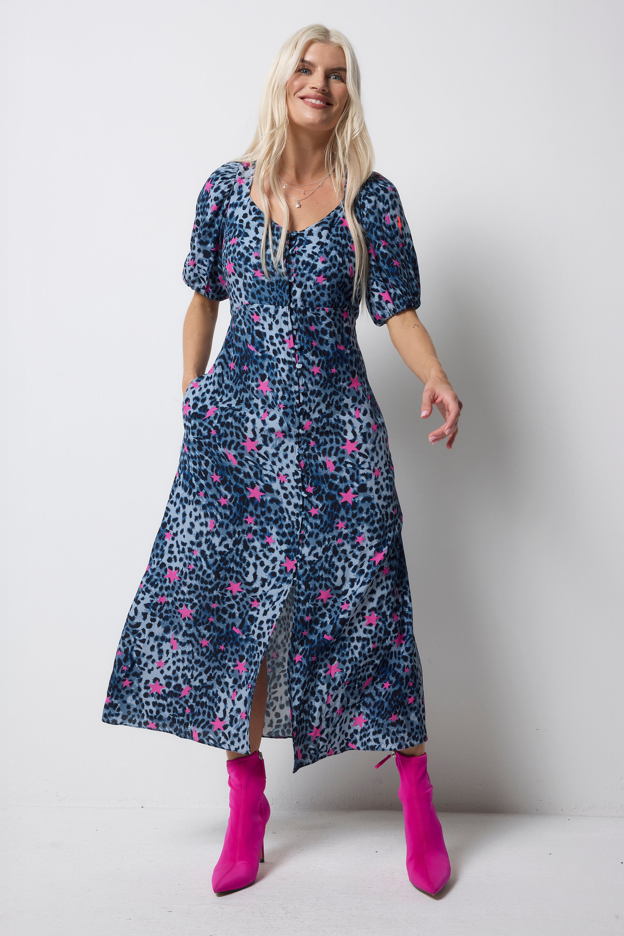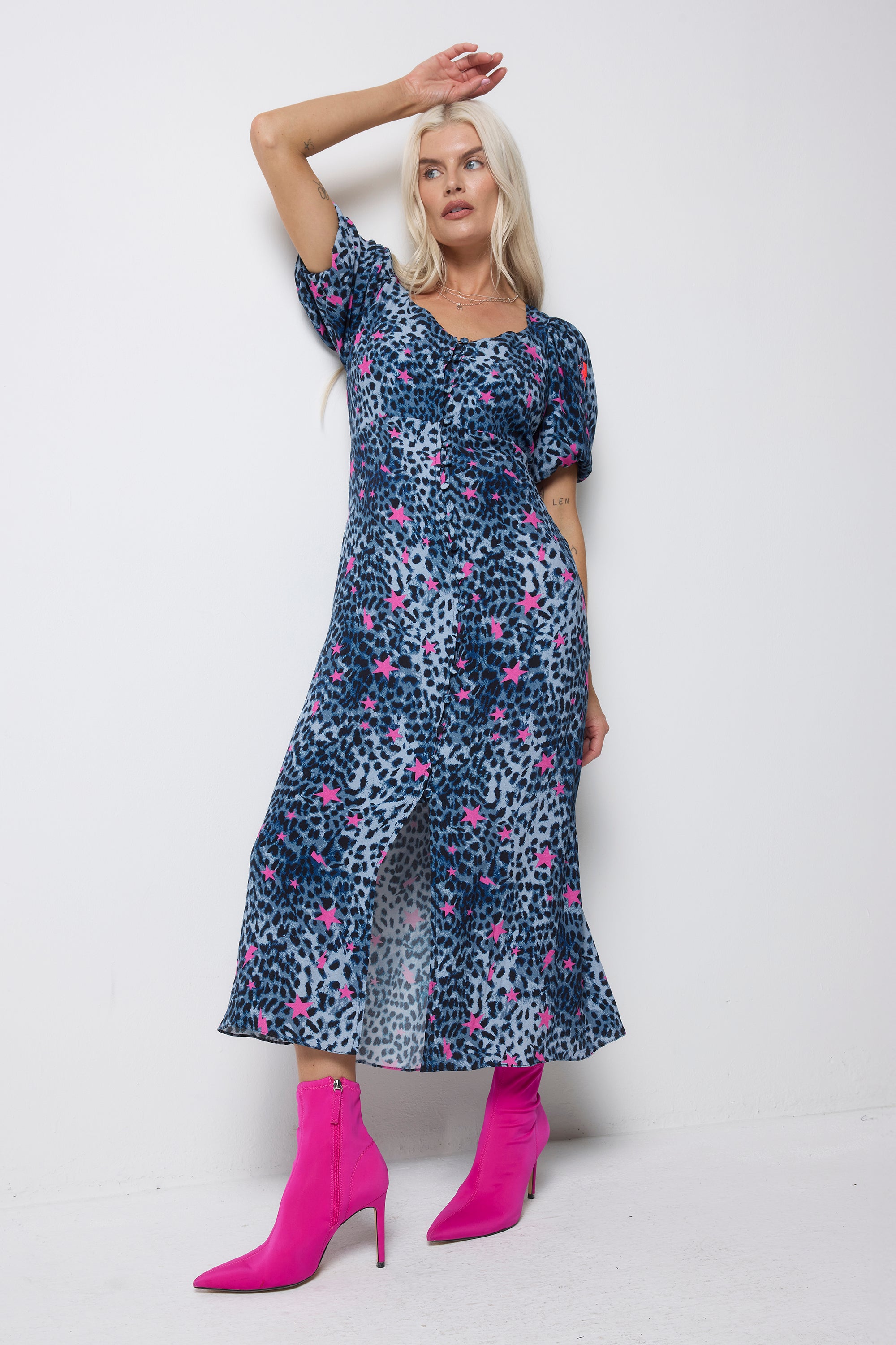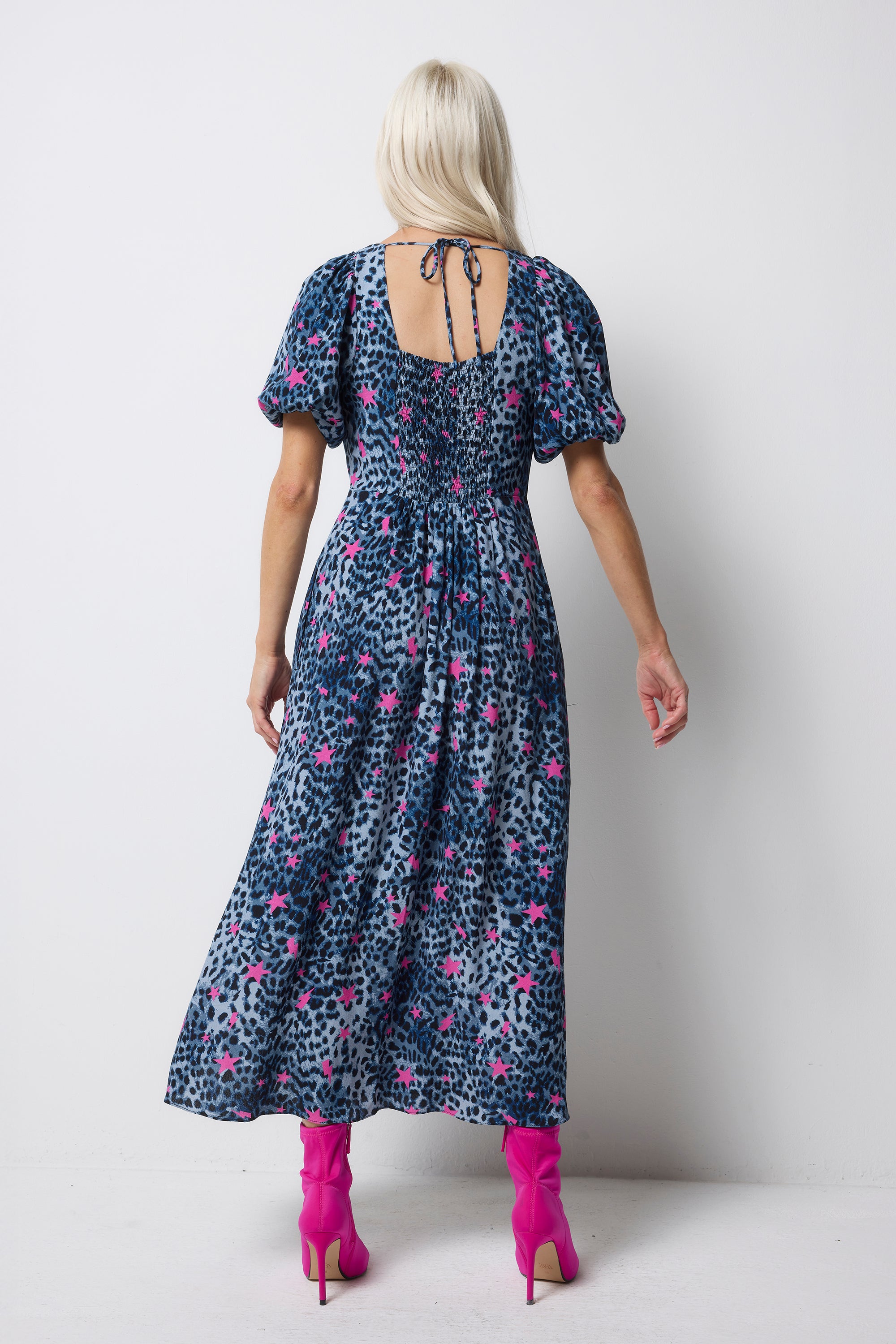 COMING SOON: Navy with Pink Star Cheetah Puff Sleeve Midi Tea Dress