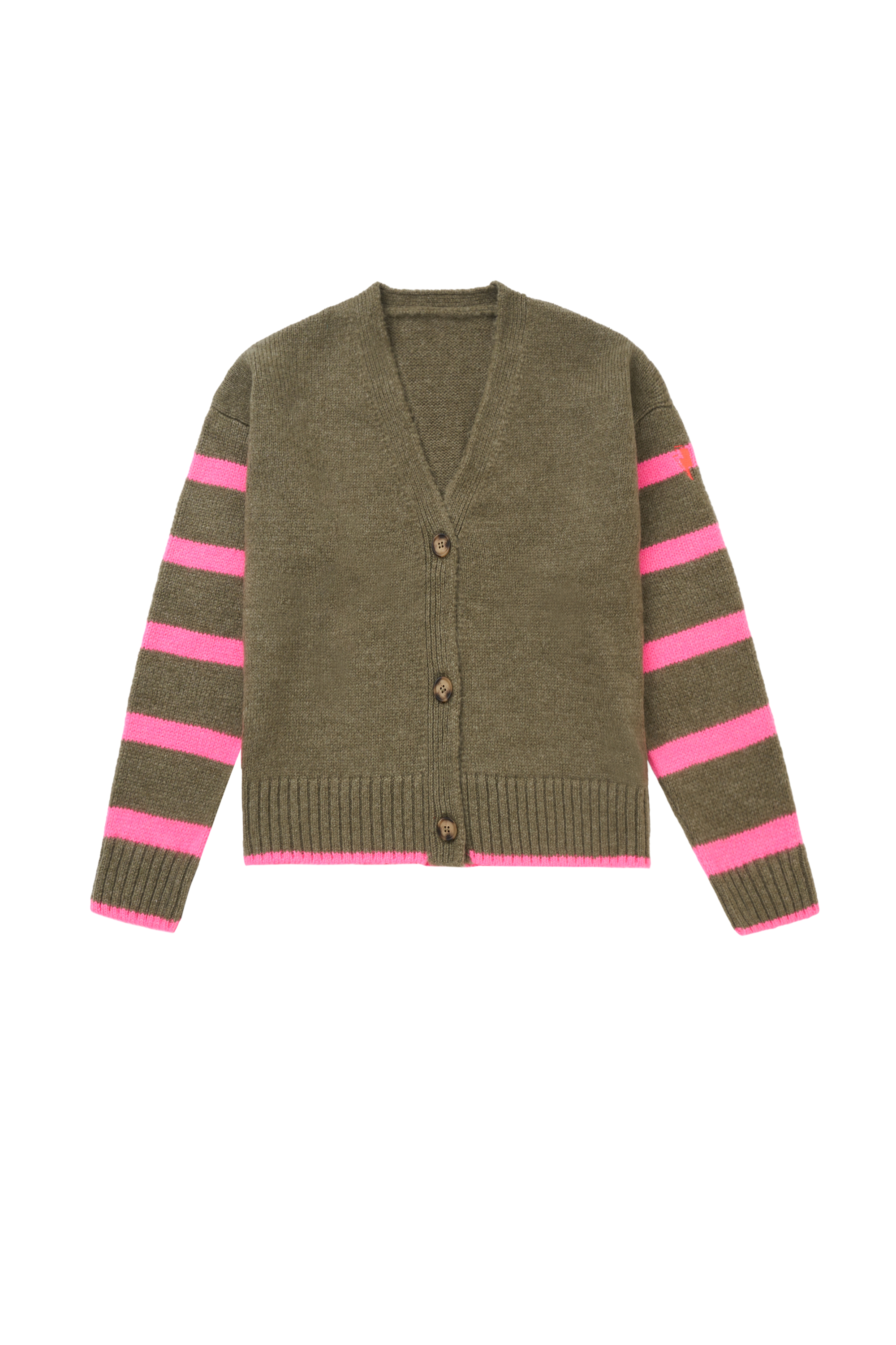 - Signature neon pink embroidered lightning bolt on the sleeve