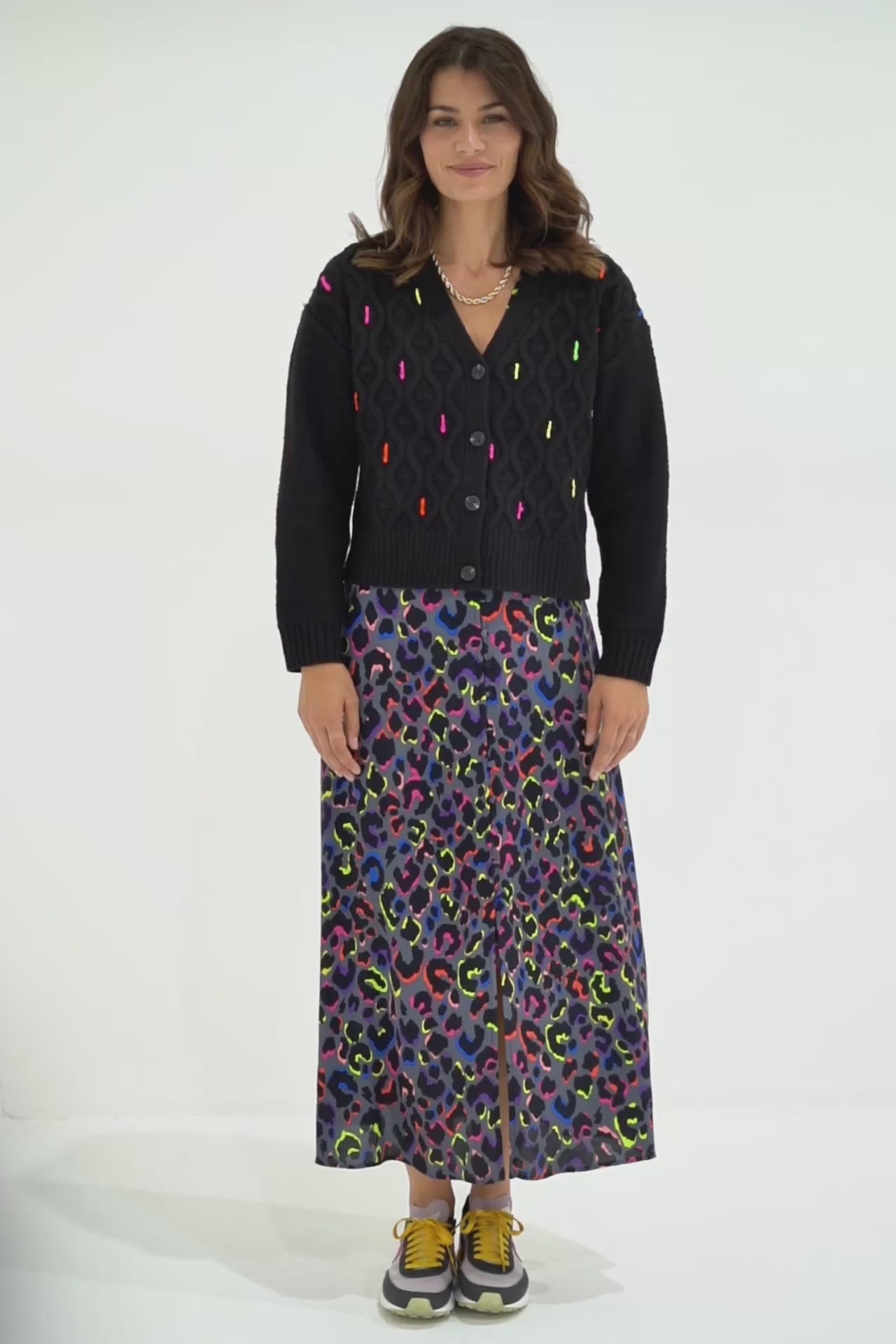 Black with Neon Rainbow Flecks Cable Knit Cardigan