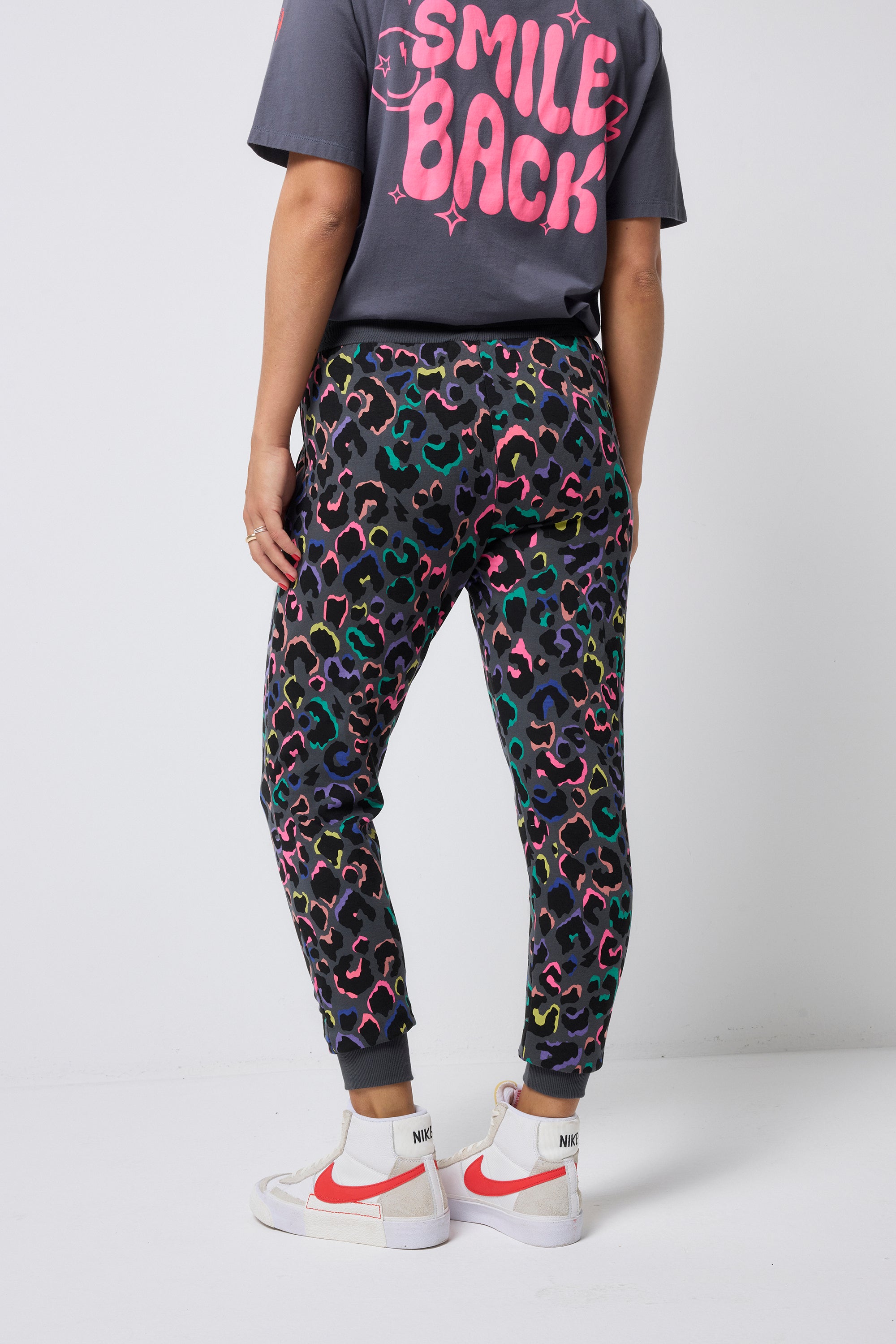Our grey with rainbow shadow leopard super soft cosy joggers deliver a perfect blend of comfort and style. Team them with the matching longline hoodie and a pair of trainers to run errands on the weekend.