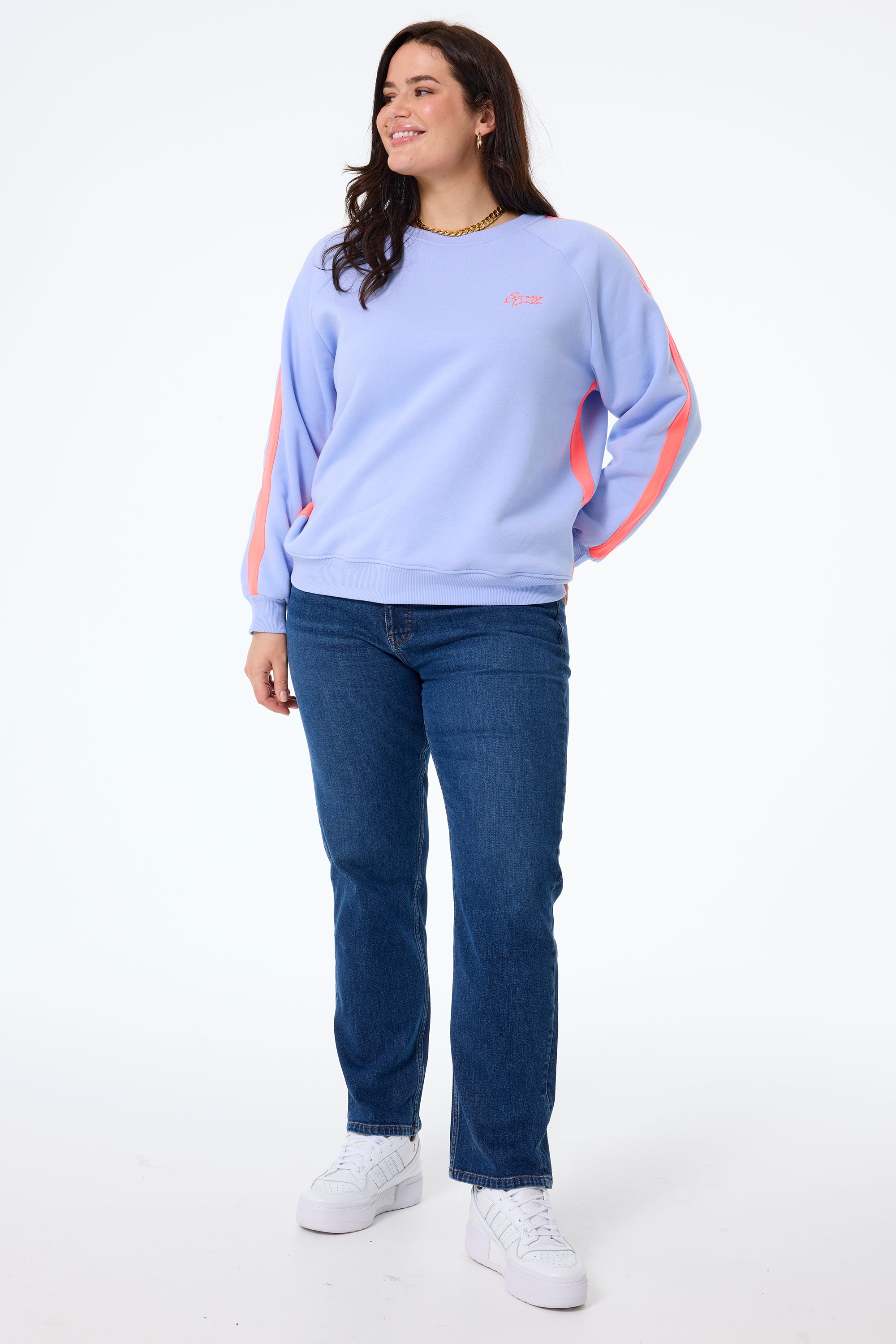 Amp up your casual collection with our blue with neon coral colourblock relaxed sweatshirt. It's oversized fit makes it easy to layer, while the raglan sleeve adds to the relaxed feel.