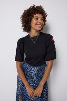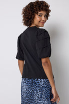 Cool cotton fabrics are key for the warmer months and our black pintuck sleeve T-shirt is the perfect summer shape. Pair with a leopard print maxi skirt and get ready for the compliments to roll in.