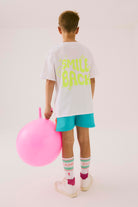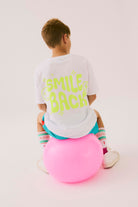 Kids White with Neon Yellow Smile Back Slogan Relaxed T-Shirt
