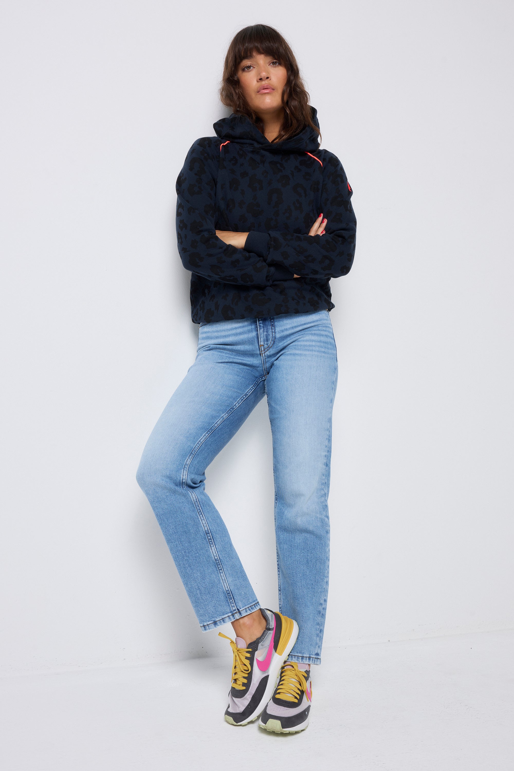 Navy with Black Leopard Ray Logo Oversized Sweatshirt