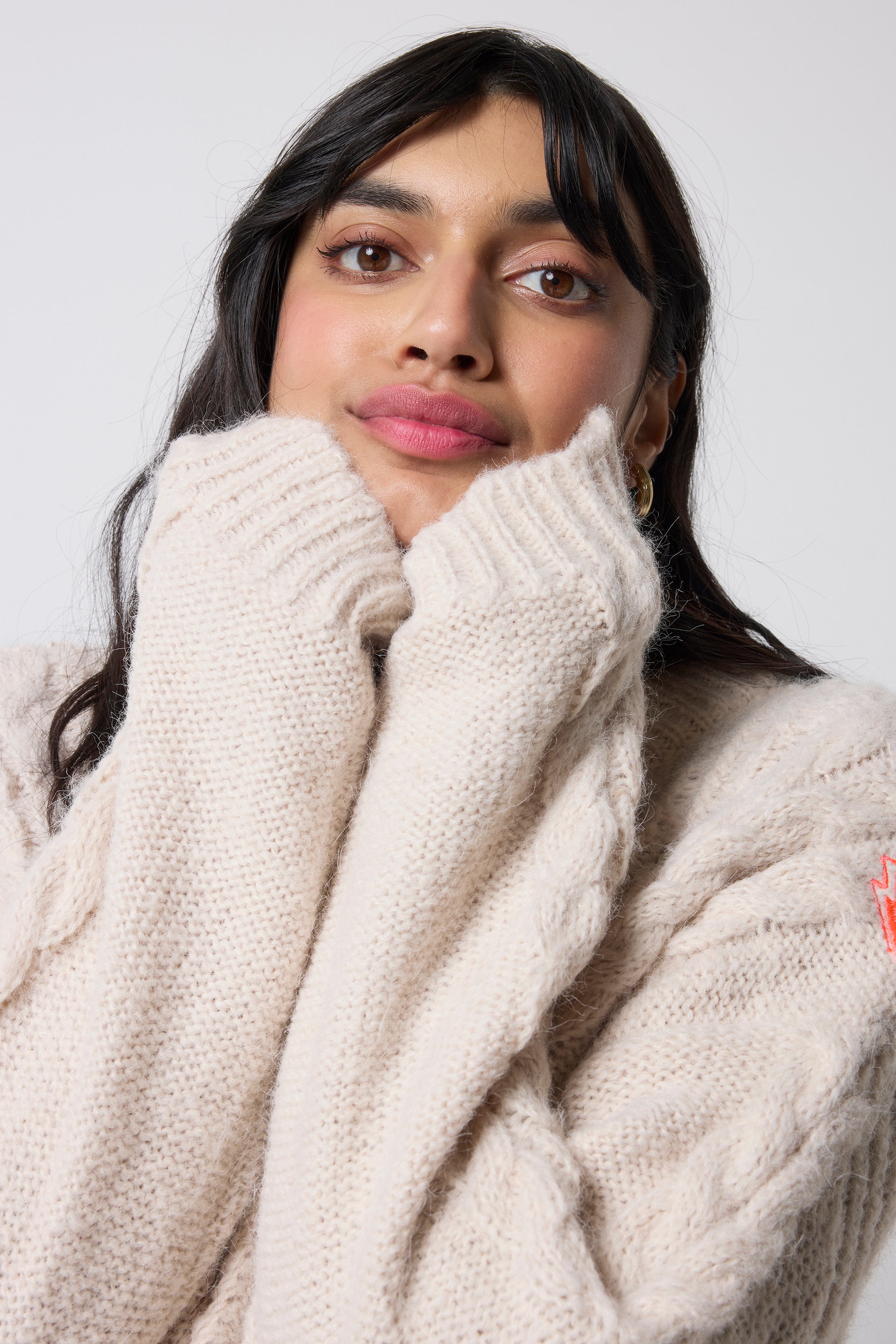 A winter classic, our soft, oatmeal cable knit jumper is a wardrobe staple and a must-have for snuggling up this season. For seasonal chic pair with a denim skirt or jeans.