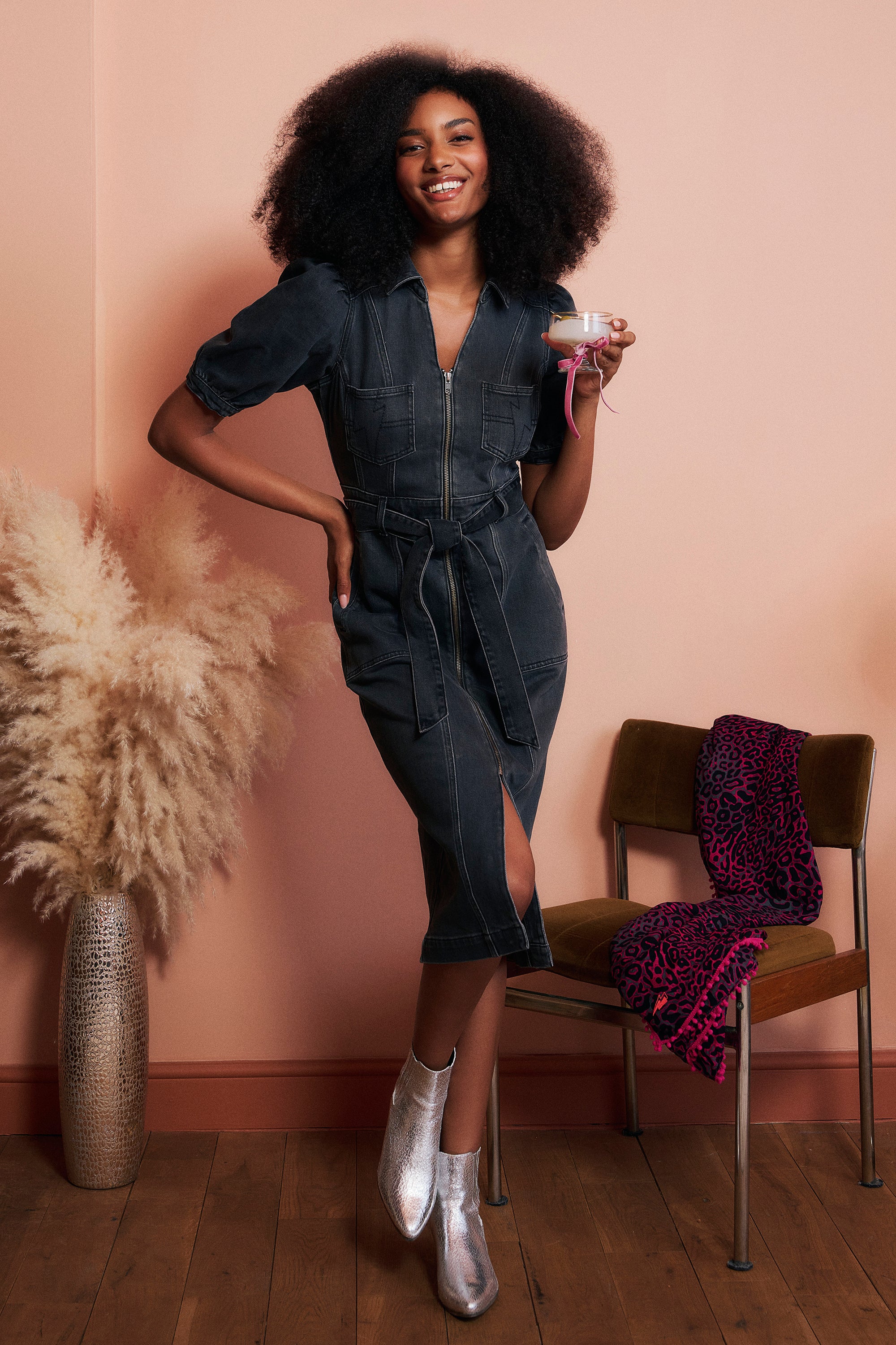 COMING SOON: Washed Black Collared Zip Through Midi Denim Dress