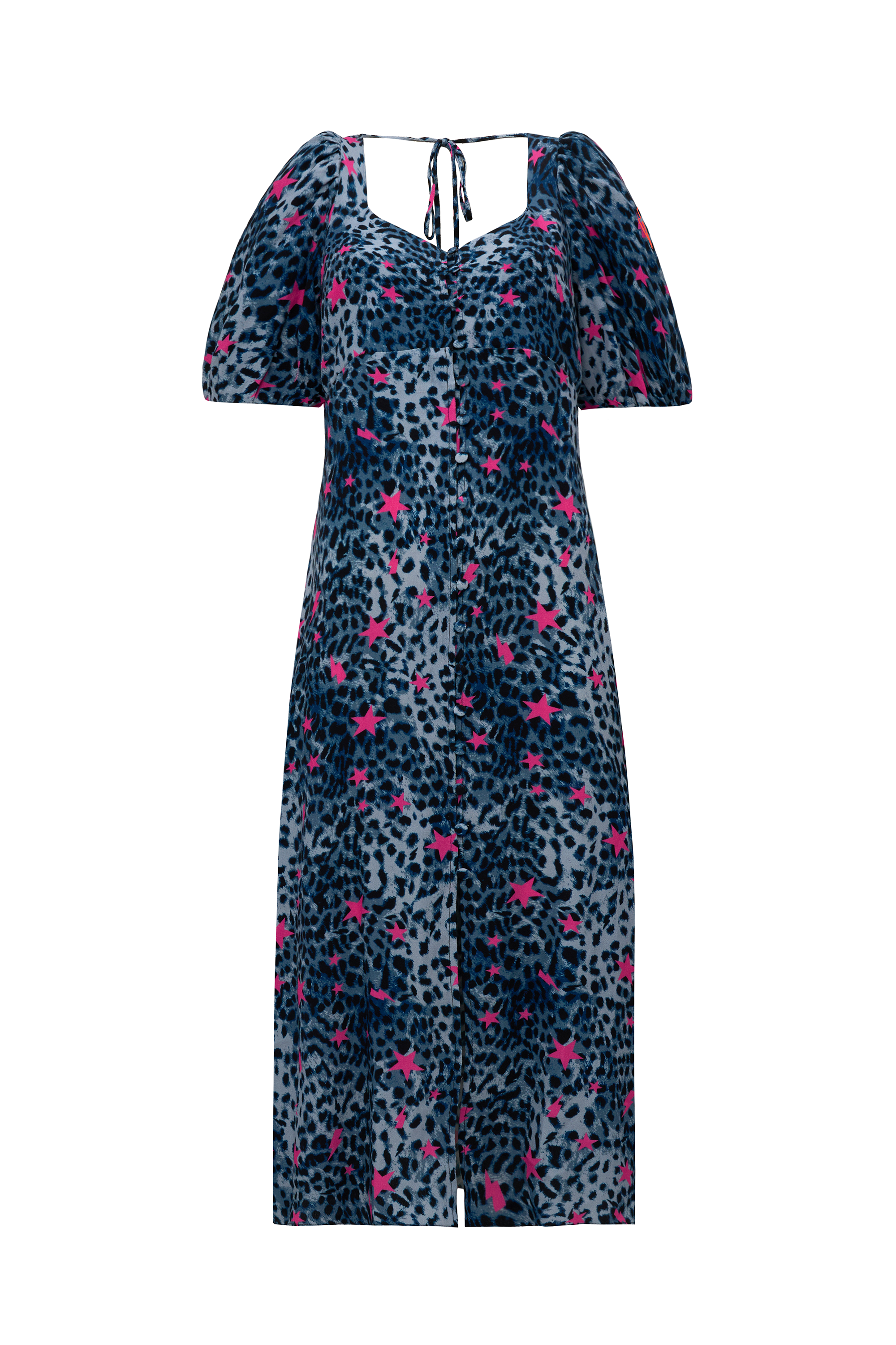 COMING SOON: Navy with Pink Star Cheetah Puff Sleeve Midi Tea Dress