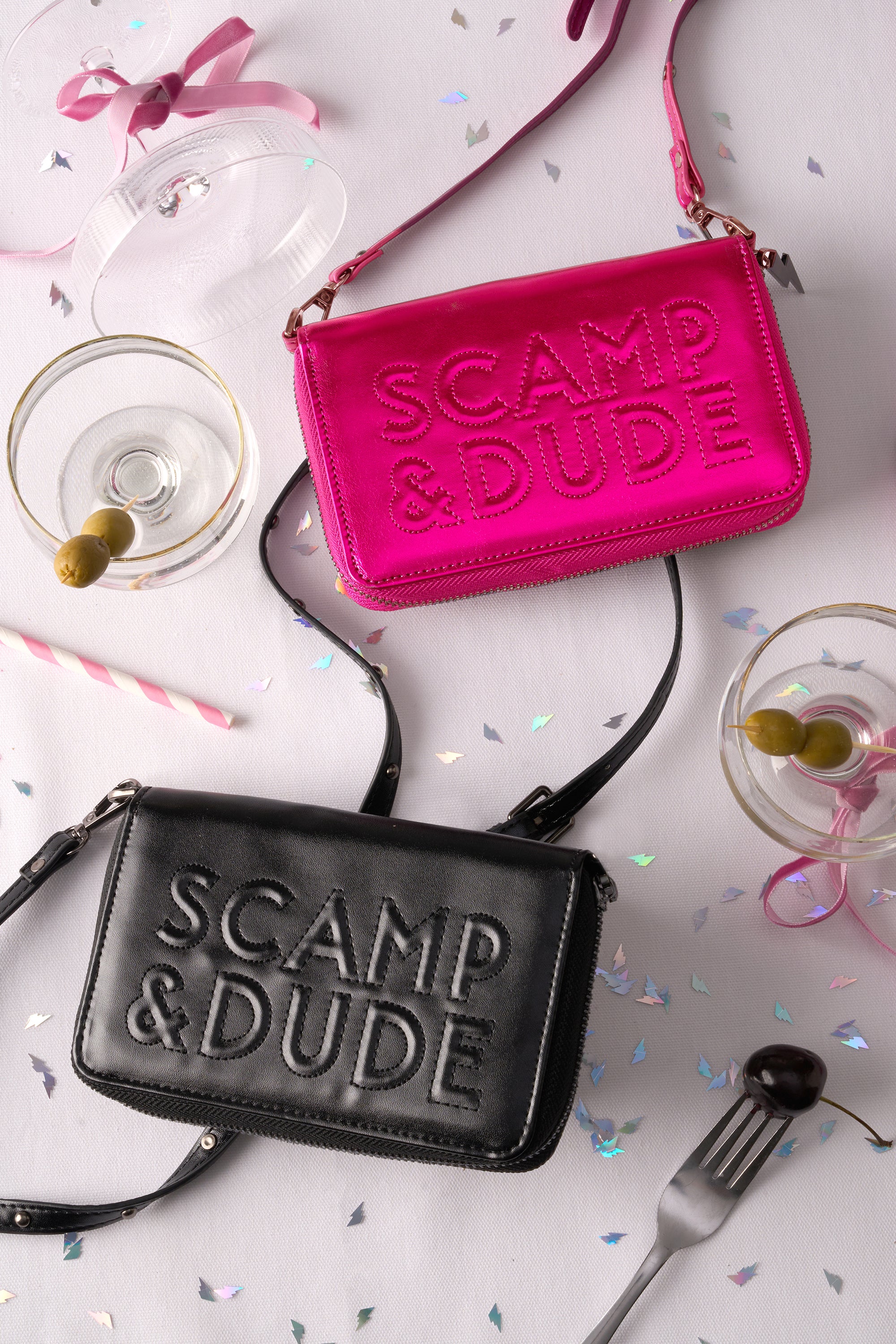 - Pink wallet with embossed ‘Scamp & Dude’ logo