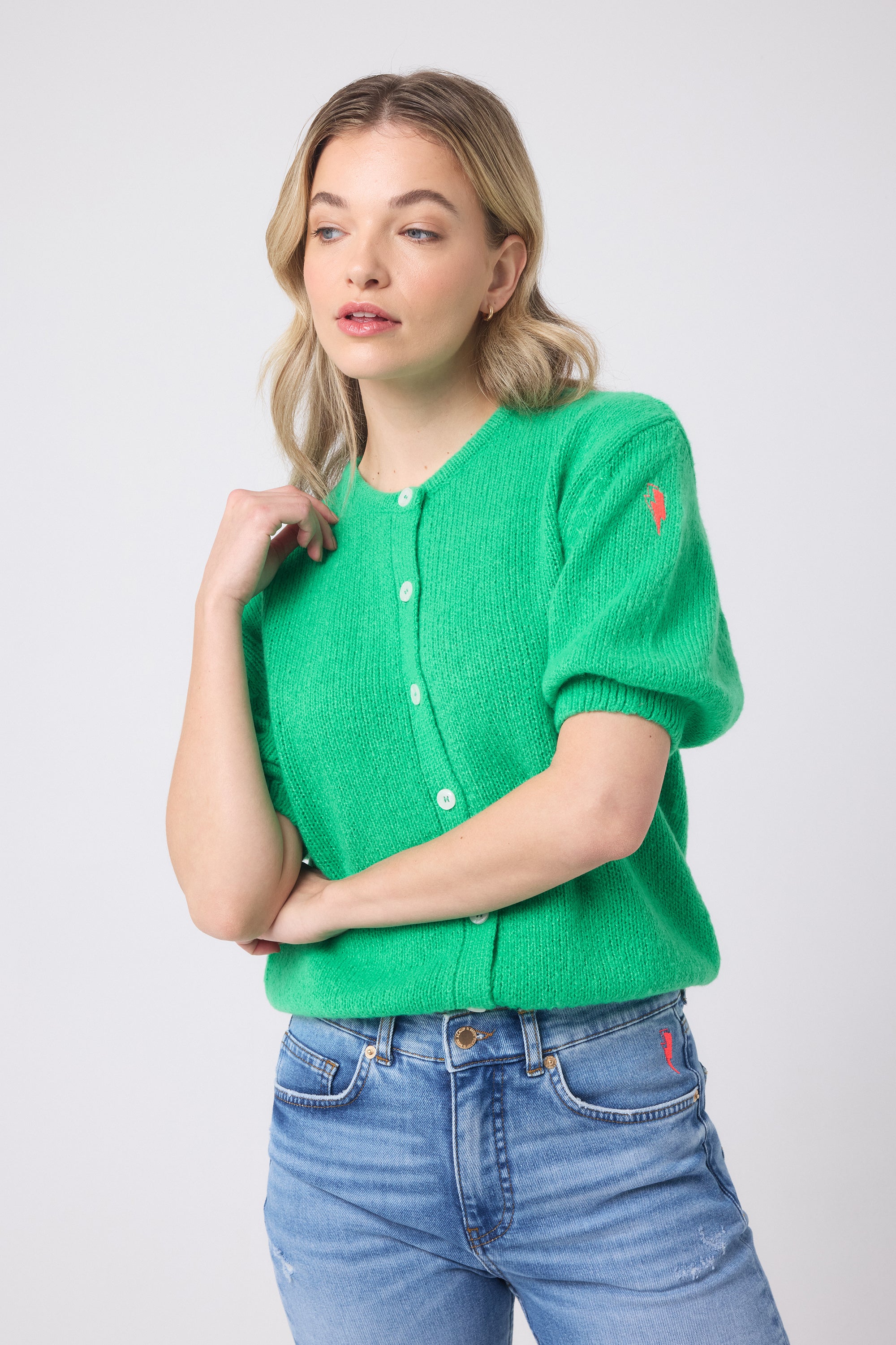 • Signature neon pink embroidered lightning bolt on the sleeve