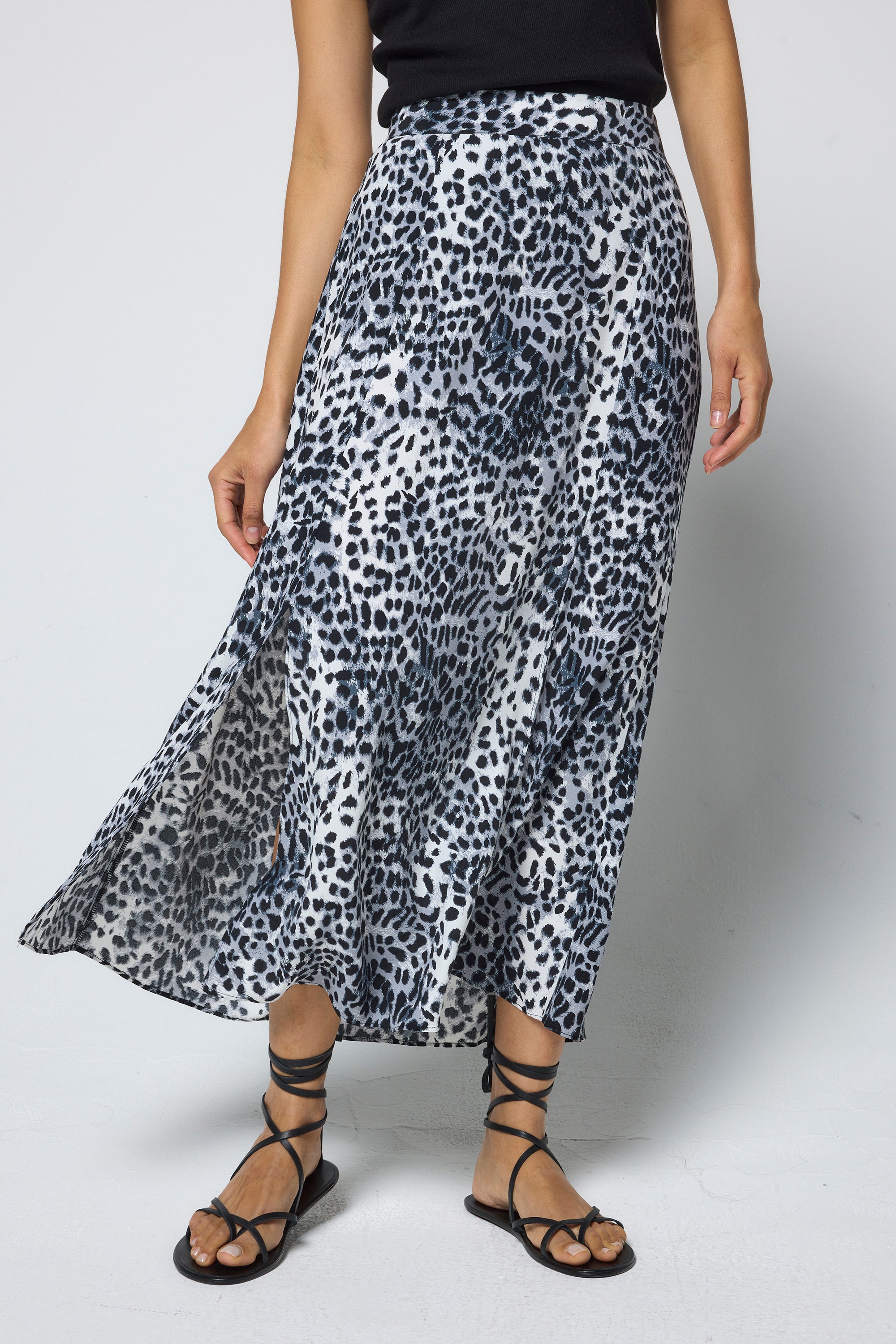 COMING SOON: Grey with White and Black Cheetah Split Front Skirt