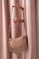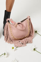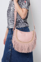 Go hands-free in style, thanks to our light pink cross body bag. Finished with fun fringing and gold-tone studs for big bohemian energy.