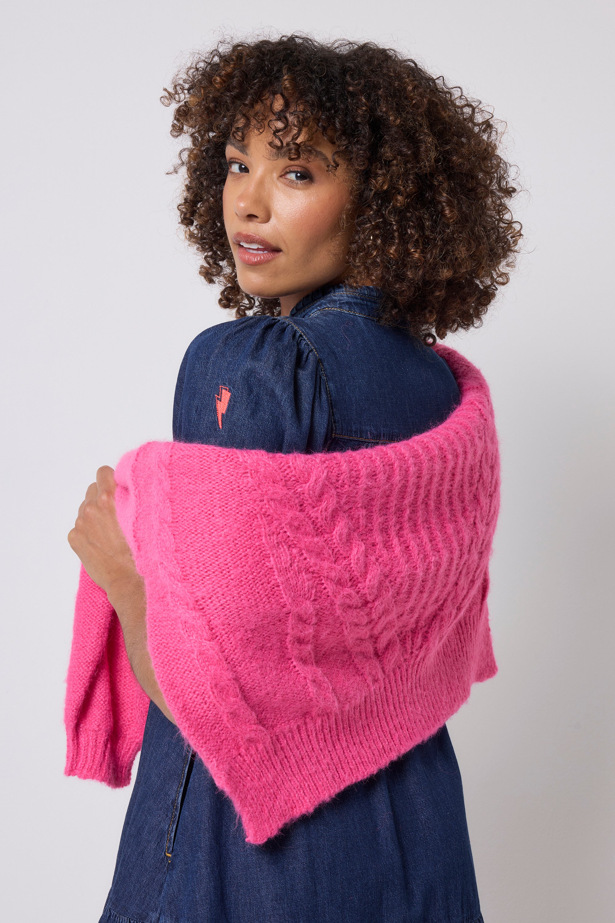 - Signature neon pink embroidered lightning bolt on the sleeve
