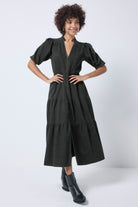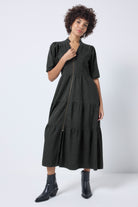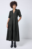 Crafted from responsibly sourced cotton this washed black zip detail tiered midi dress is all about off-duty charm. It's crafted in denim, complete with romantic short puff sleeve sleeves, a smart v-neckline and a contrast zip fastening. For a flattering silhouette, the piece is elasticated around the waist while the midi length skirt fall in tiers in a flattering fit and flare style.