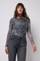 Grey Cheetah Mesh Top